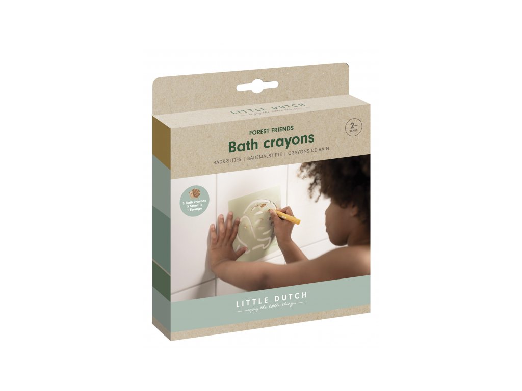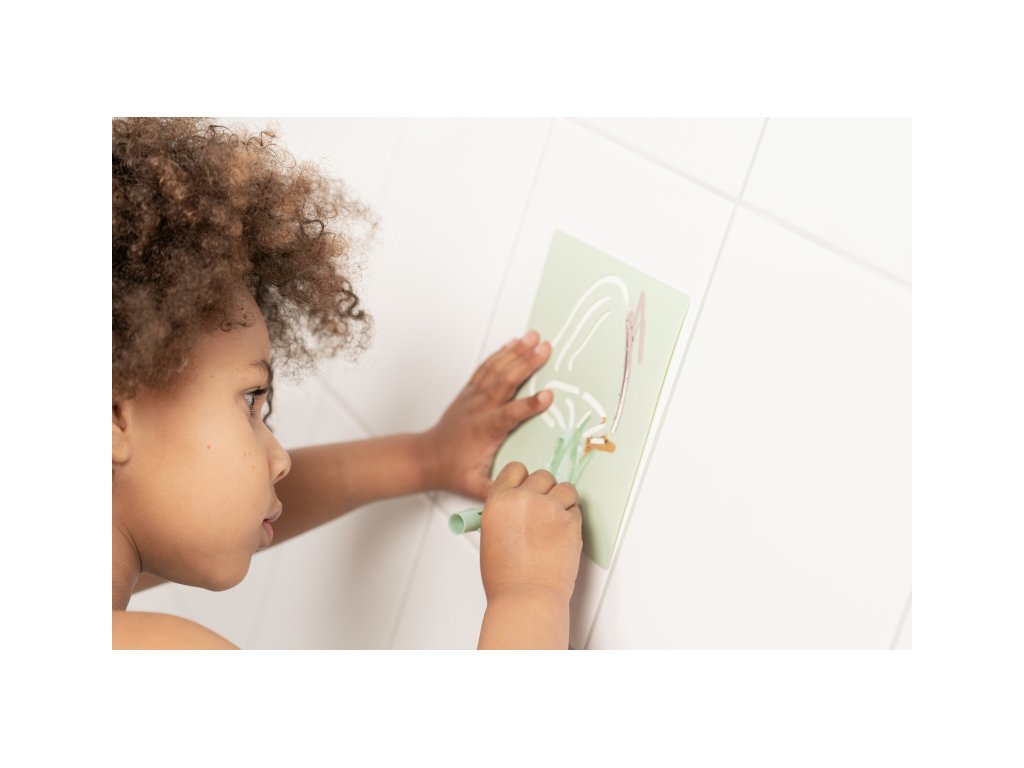 S těmito pastelkami do koupele se může fantazie vašeho dítěte plně rozvinout i během koupání ve vaně. Sada obsahuje 3 šablony, 5 pastelek v jemných pastelových barvách a houbičku ve tvaru ježka, s jejíž pomocí malůvky po skončení koupele snadno smyjete. Pastelky mají tvar pro snadné držení a jsou vyrobené z bezpečného materiálu. Snadno je z vany i dlaždiček umyjete vodou. Sada je součástí designové sady hraček a doplňků Little Dutch Forest Friends inspirované životem v lese. Obsah balení: 5 pastelek, 3 šablony, houbička Rozměry: 20,6 x 18 x 2,5 cm Vhodné pro děti od 2 let.