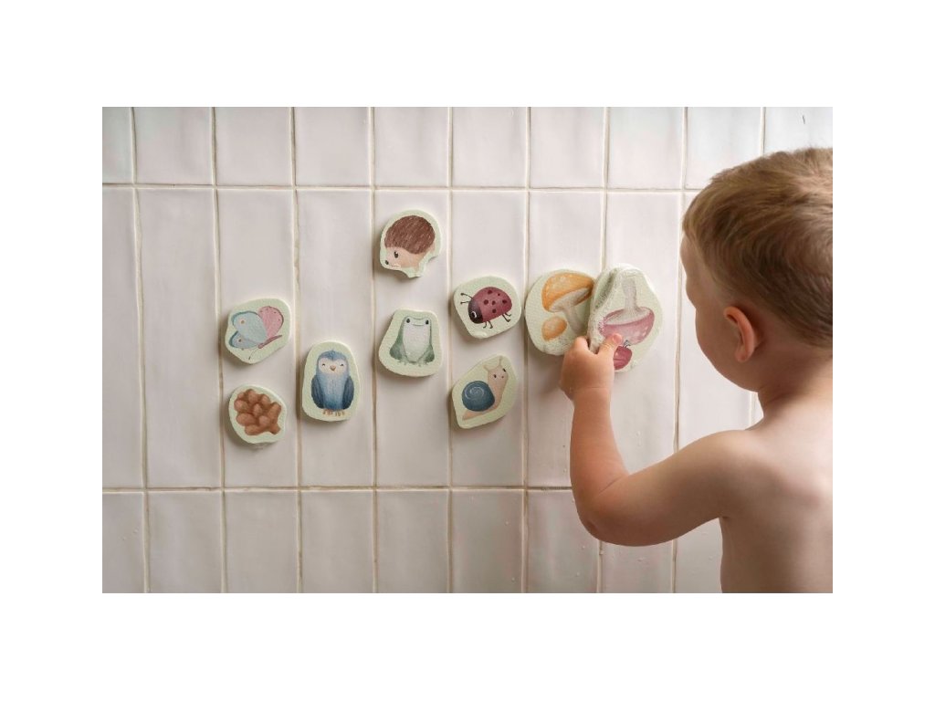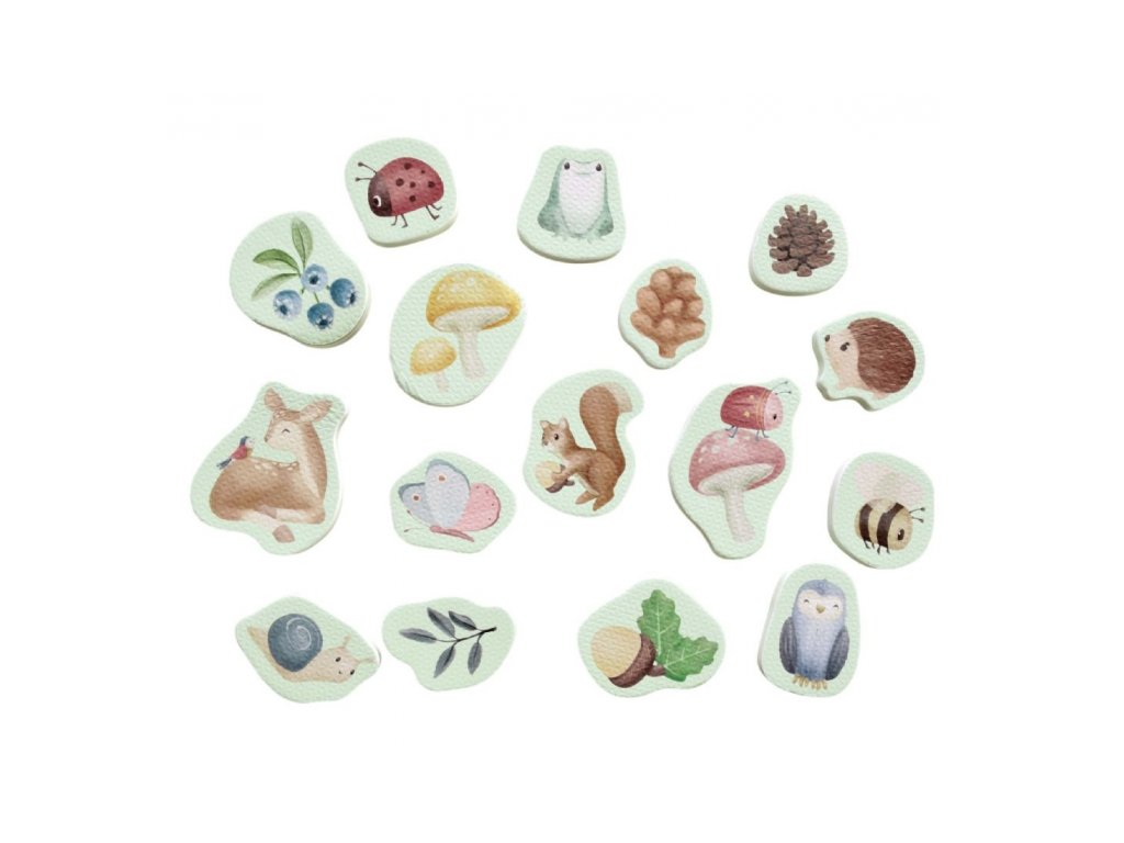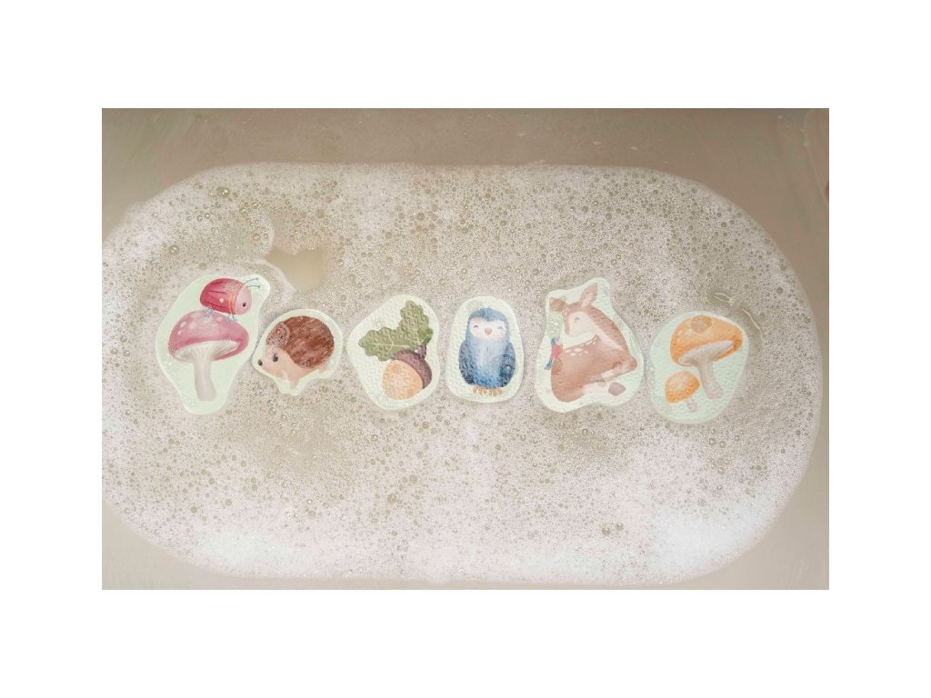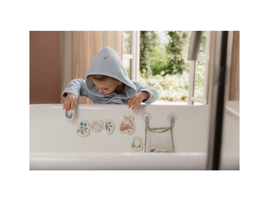 Pěnové samolepky do vany s natištěnými motivy ze života v lese zabaví vaše děti při koupání ve vaně. Samolepky stačí namočit a přitisknout je na vanu. Po koupeli je snadno uložíte do síťovinového sáčku s přísavkami, který je součástí výrobku. Hračka je součástí designové kolekce hraček a doplňků Little Dutch Forest Friends inspirované životem v lese. Balení obsahuje 16 samolepek. Vhodné pro děti od 10 měsíců.