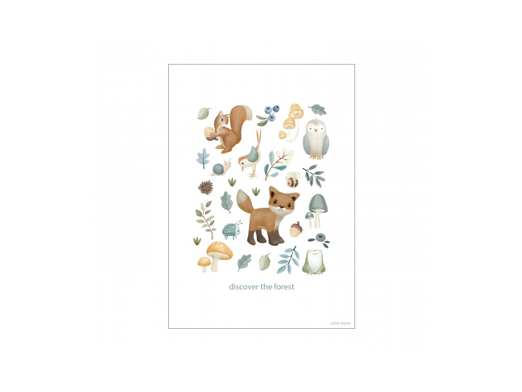 Oboustranný plakát s krásnými ilustracemi se stane originální dekorací dětského pokoje. Oboustranné provedení umožňuje snadnou výměnu obrázku pouhým otočením. Plakát je vyroben z kvalitního silného papíru. Plakát je součástí designové kolekce hraček, textilu a doplňků Little Dutch Forest Friends inspirované životem v lese. Pro snadné zavěšení plakát zkombinujte se samostatně prodávaným Little Dutch dřevěným věšákem na plakáty A3. Rozměry: 42 x 32 cm