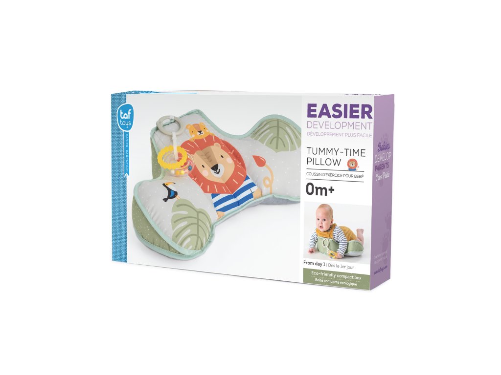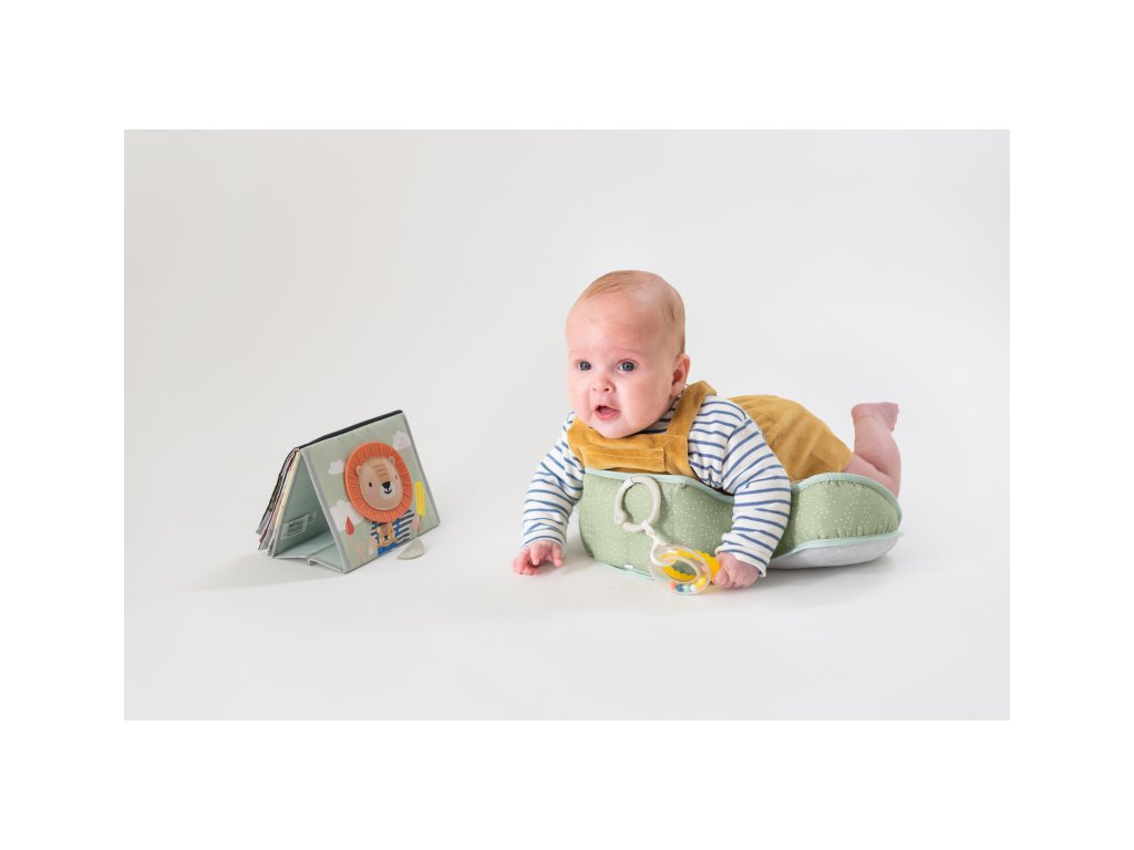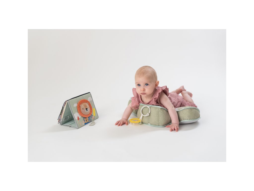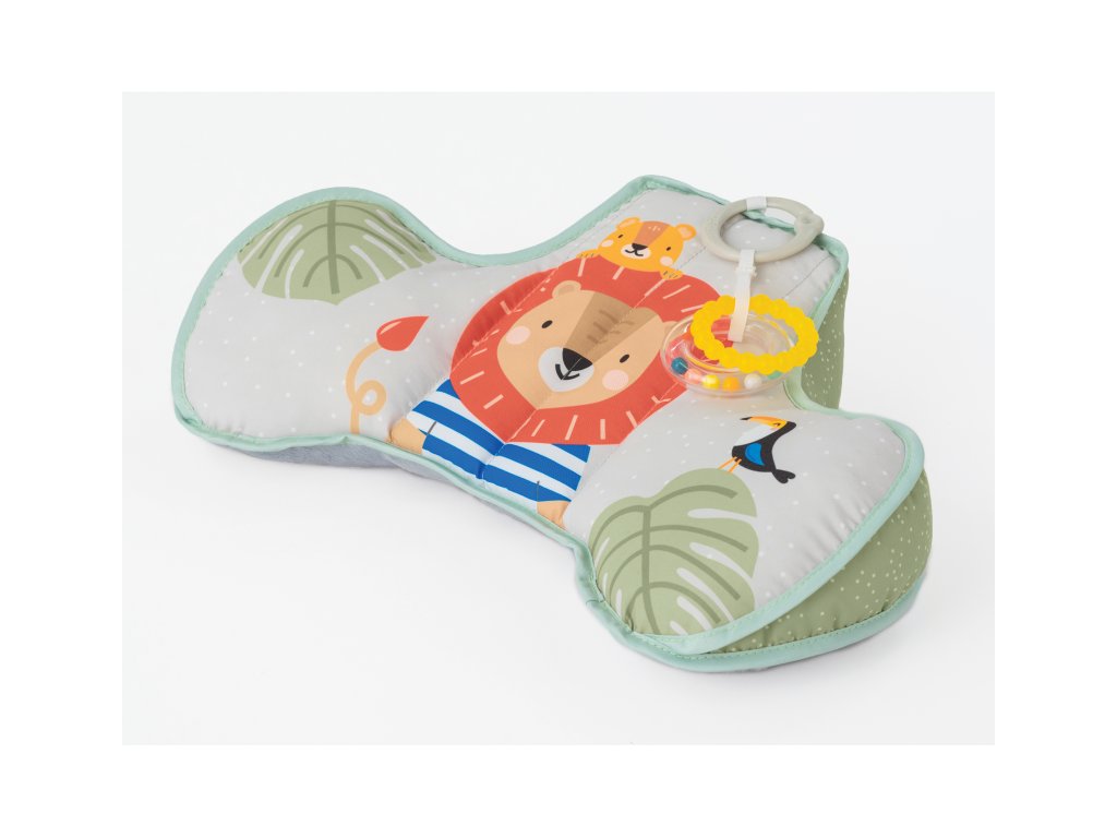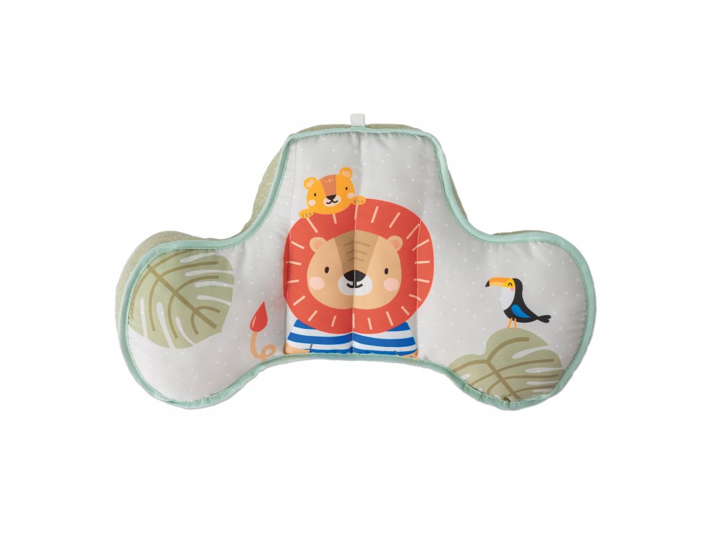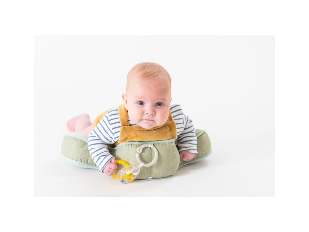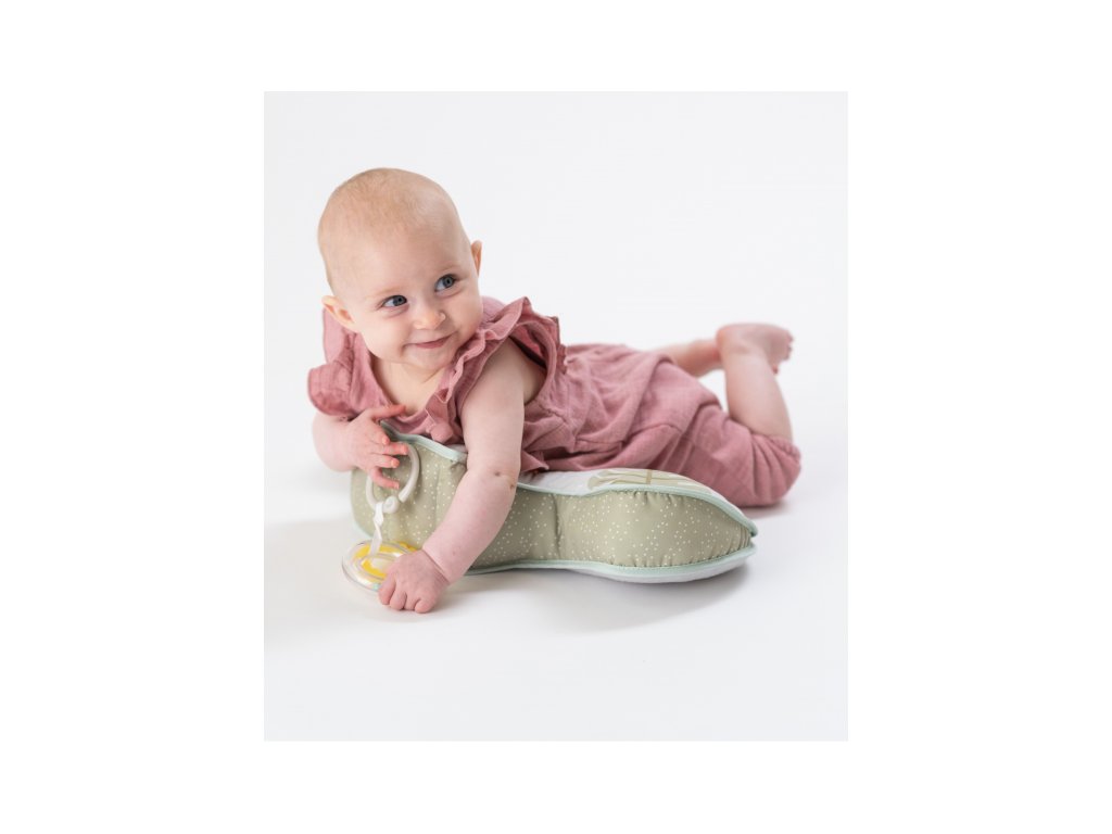 Polštářek z měkkého, příjemného materiálu je speciálně navržený, aby podporoval hraní dítěte na bříšku. Polštářek s kousátkem a chrastítkem podněcuje dítě ke zvedání hlavičky a krku. Pro malého kojence, který tráví většinu dne i noci ležením na zádech, je důležité, aby trávil několikrát denně čas ležením na bříšku a takzvaným “pasením koníčků”. Poloha na bříšku přináší děťátku jiný pohled na svět a posiluje krční a zádové svaly, které později umožňují dítěti začít se přetáčet, lézt a sedět bez opory. Vhodné pro děti od narození.