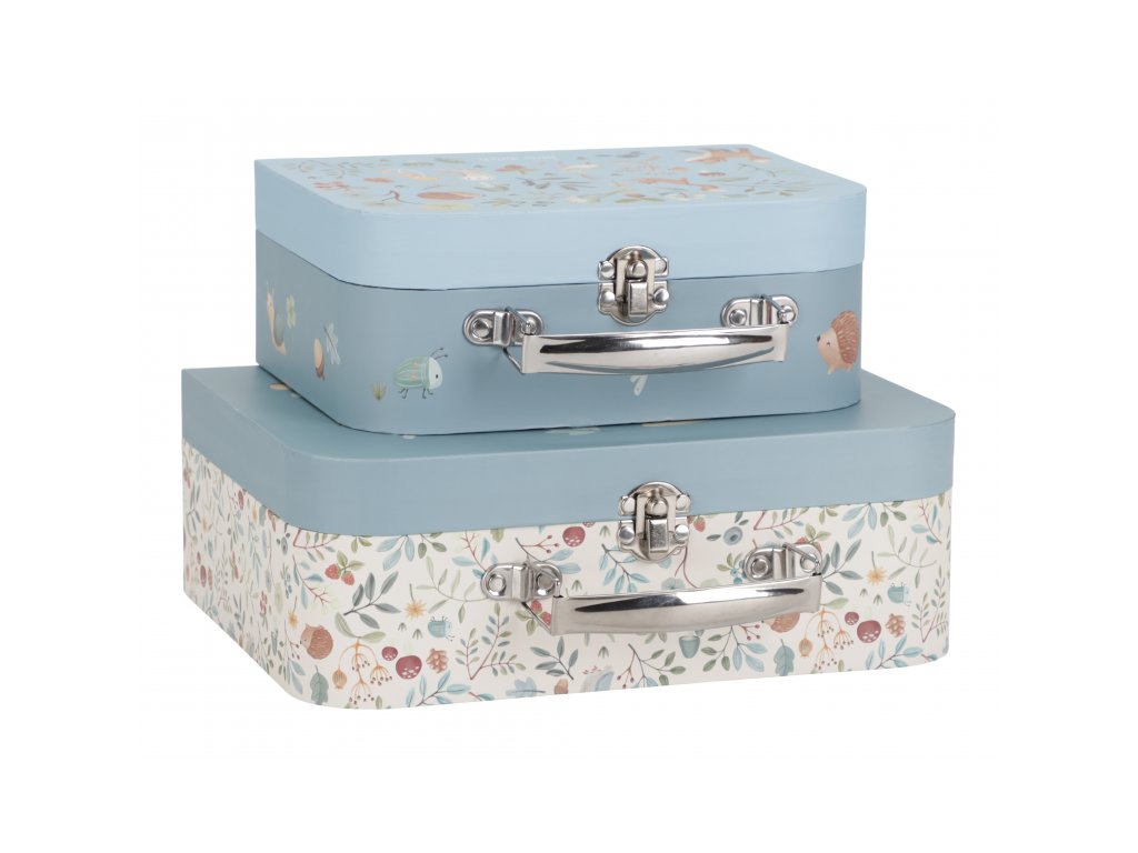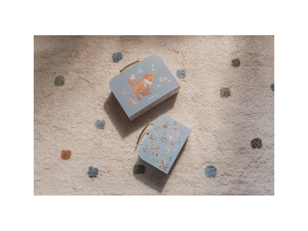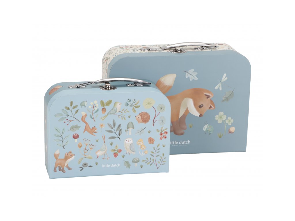 Sada klasických dětských kufříků v kvalitním provedení s krásným potiskem motivů ze života v lese. Sadu tvoří dva kufříky, menší kufřík má velikost, která se vejde do většího kufříku pro úsporu místa při skladování. Oba kufříky mají klasické kovové madlo pro snadné přenášení a zámek pro bezpečné uzavření obsahu. Kufříky jsou ideální pro ukládání drobných hraček, výtvarných potřeb apod. a budou sloužit i jako krásná dekorace v dětském pokoji. Sada je součástí designové kolekce hraček a doplňků Little Dutch Forest Friends inspirované životem v lese. Rozměry většího kufříku: 25 x 20 x 8,9 cm Vhodné pro děti od 2 let.