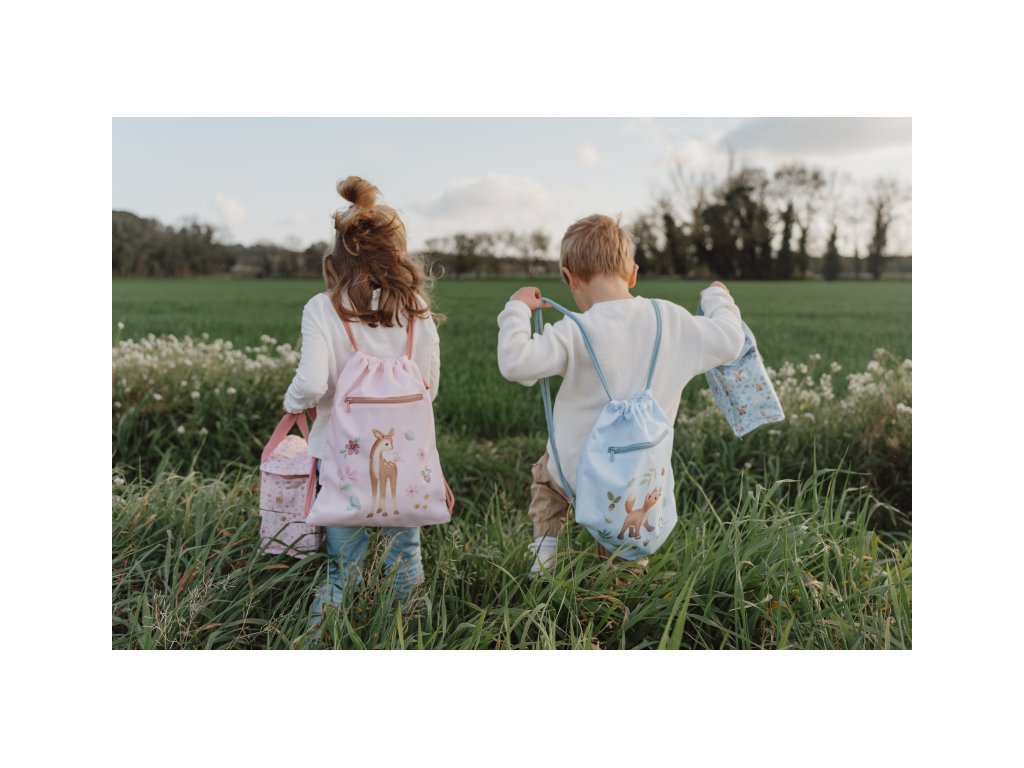 Sportovní pytel potištěný něžnými přírodními motivy je ideálním doplňkem do školy na tělocvik či na sportovní kroužek. Dvojité stahovací šňůrky umožňují nošení jako batoh, díky poutku jej snadno např. zavěsíte na věšák v šatně. Vnější kapsa na zip nabízí prostor pro bezpečné uložení drobností. Uvnitř najdete popisovatelnou jmenovku. Sportovní pytel je součástí designové kolekce hraček a doplňků Little Dutch Forest Friends, inspirované životem v lese. Rozměry: 38 x 29 cm