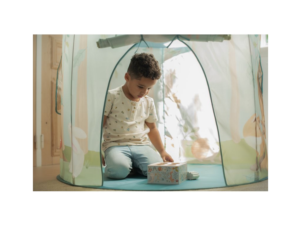 Úžasný stan je skvělým místem pro všechny děti, které mají rády schovávačky a svůj kouteček jen pro sebe. Stan s krásným potiskem motivů ze života v lese bude vděčným pomocníkem při hrách a rozvíjení fantazie vašich dětí. Stan je vybaven dvěma okénky a vchodovým závěsem. Stan je součástí designové kolekce hraček a doplňků Little Dutch Forest Friends, inspirované životem v lese. Určeno pouze pro použití v interiéru. Rozměry: 105 x 105 x 125 cm Výška stanu: 125 cm Hlavní materiál: 100% polyester Vhodné pro děti od 2 let.