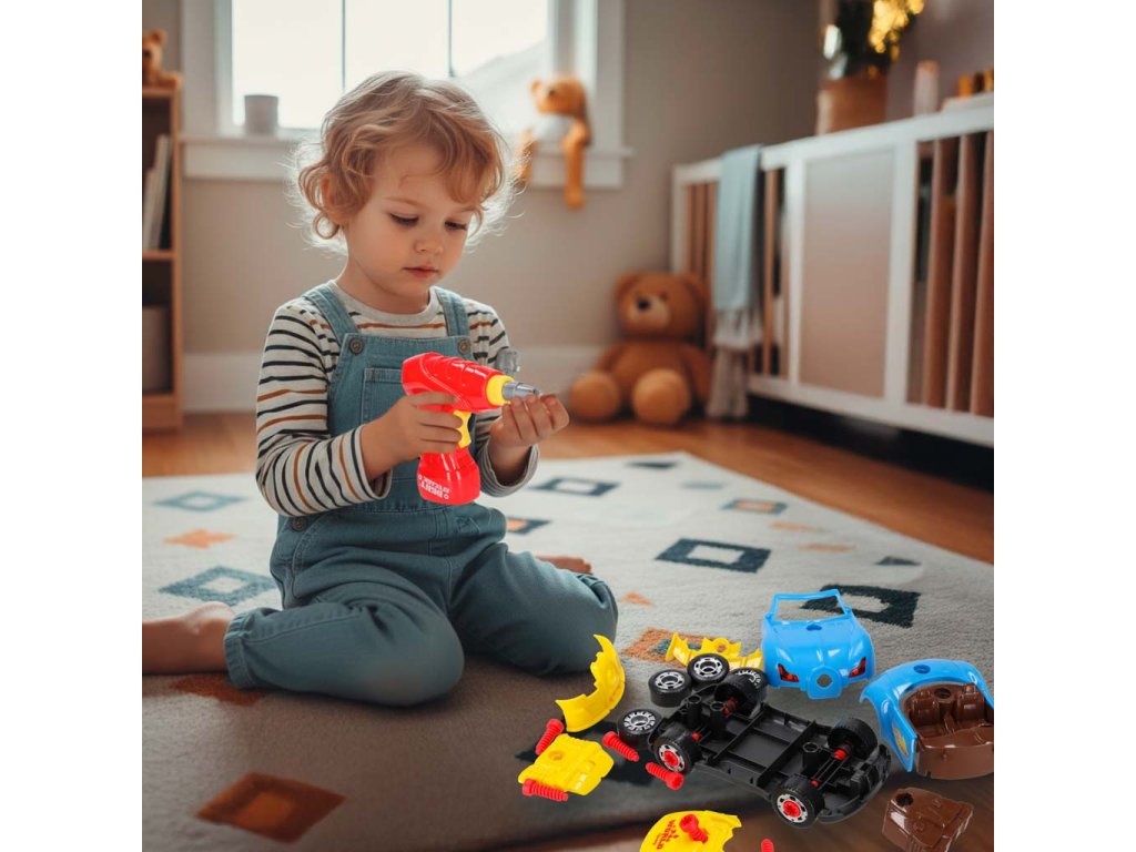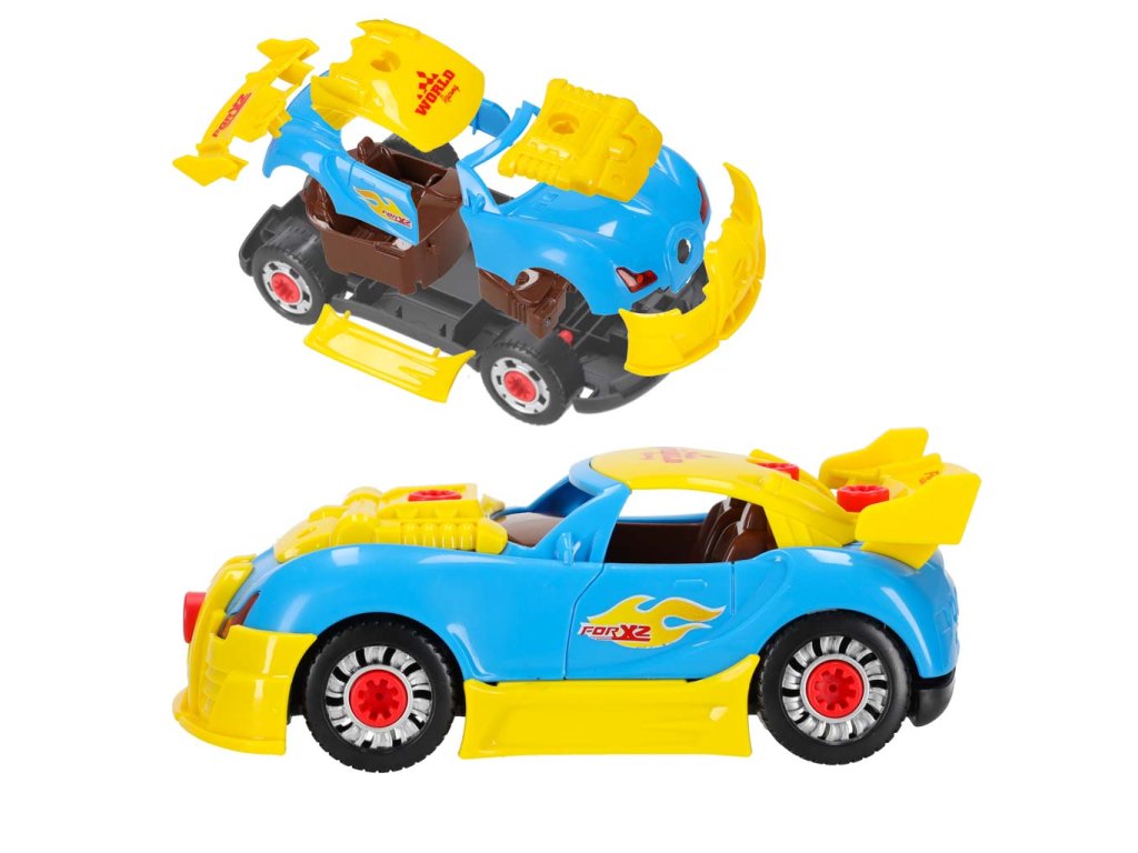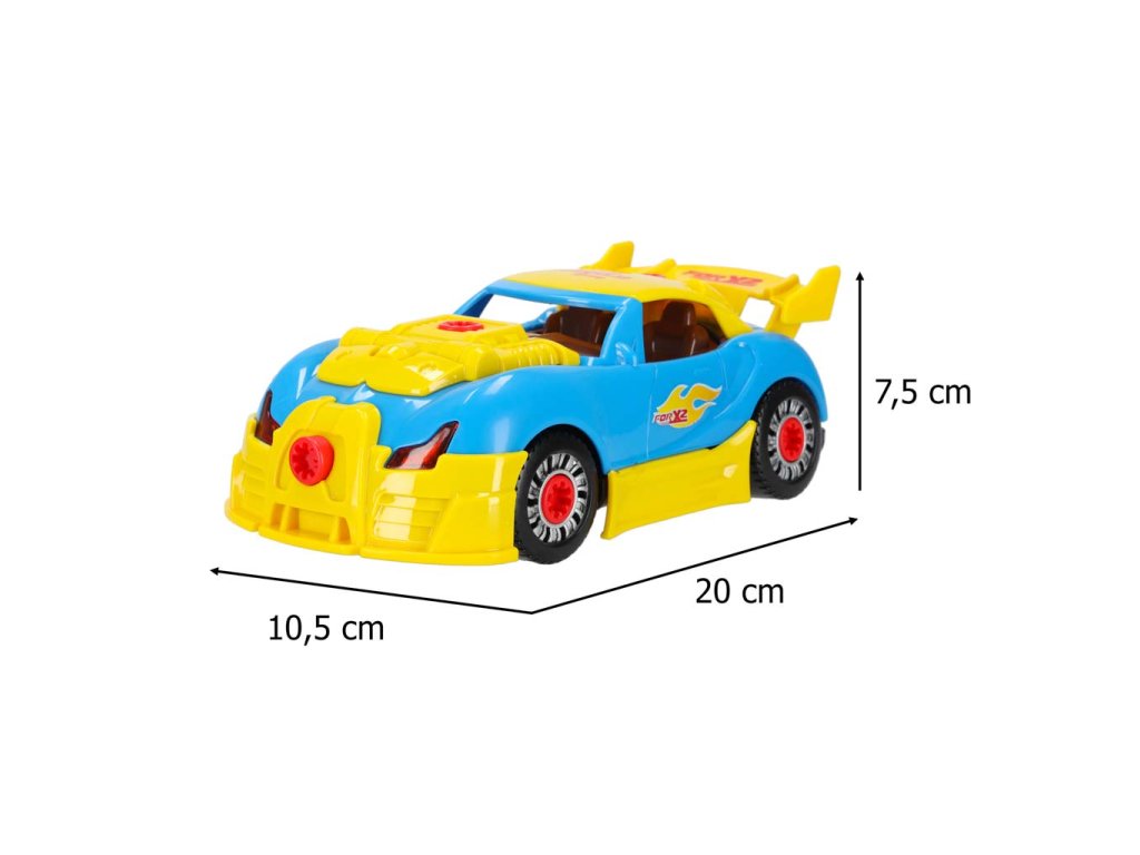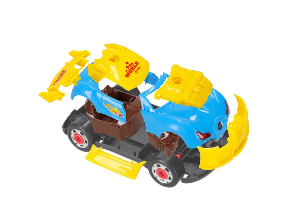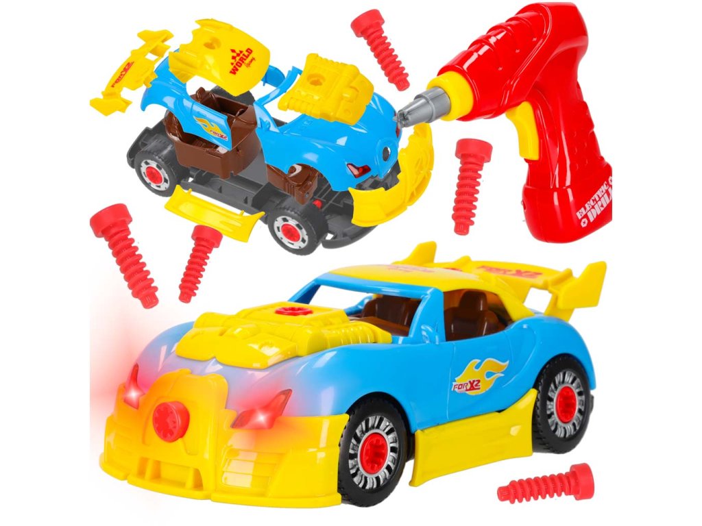 Sestavovací a tuningové autíčko se šroubovákem je skvělým nápadem na dárek pro malého fanouška autíček. Auto lze sestavit od základu a jeho vzhled si lze přizpůsobit. Motor funguje na baterie AG13 a po nastartování auto rozsvítí světla a vydává charakteristické zvuky.