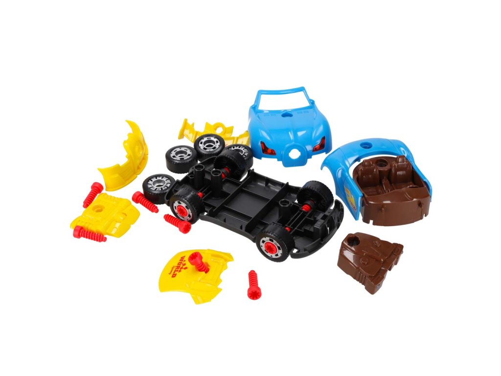 Součástí hračky je šroubovák - můžete tak snadno odšroubovat části auta nebo vyměnit kola