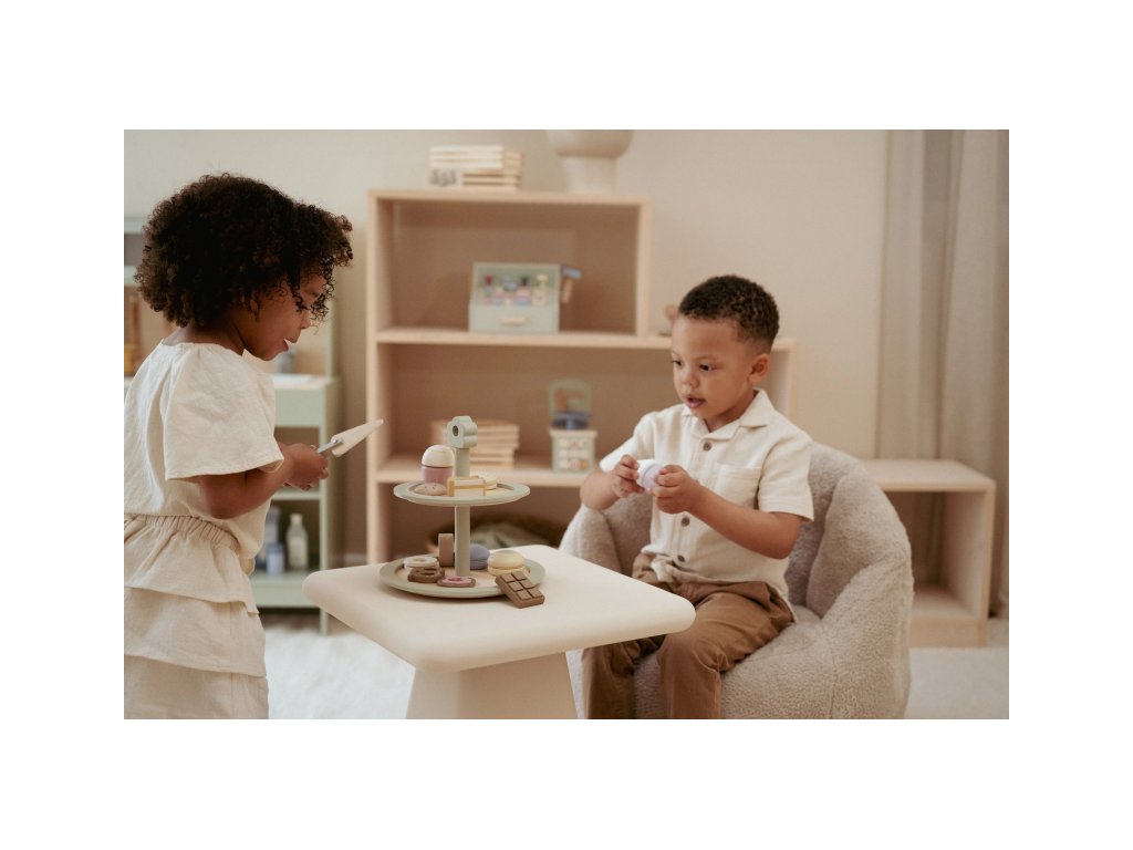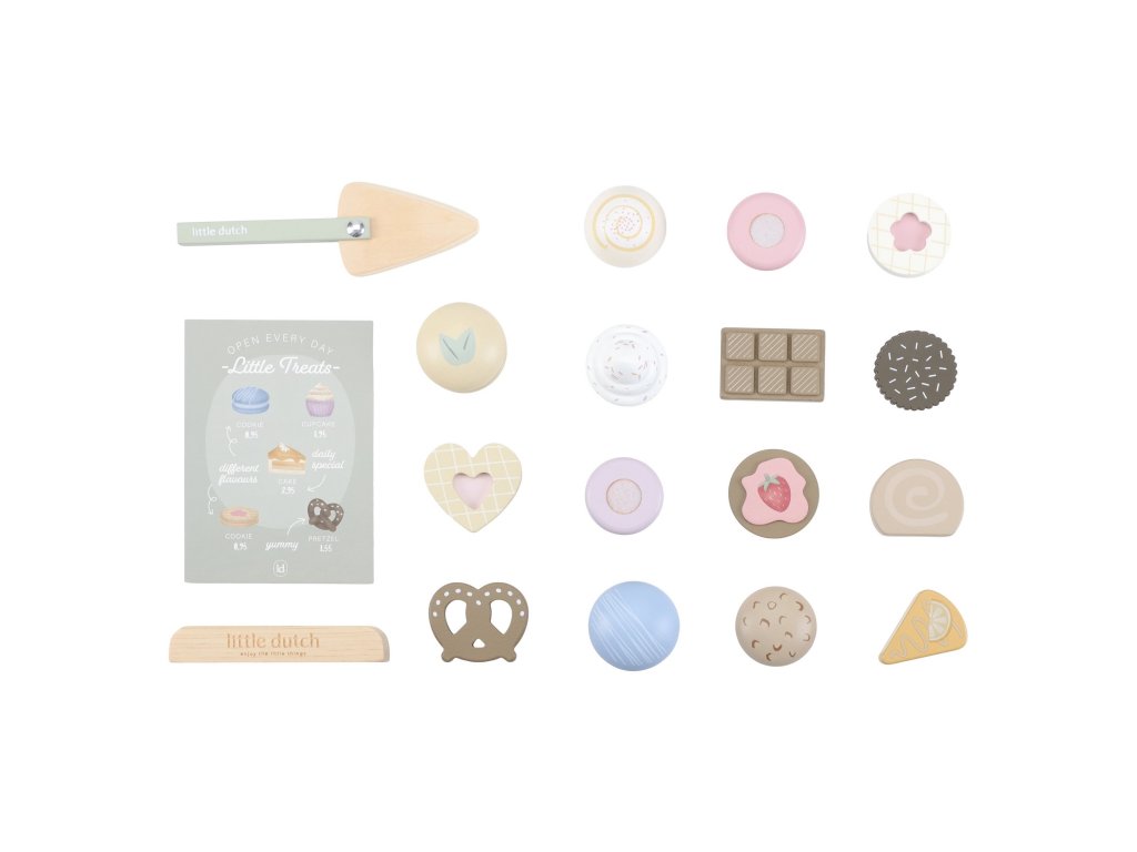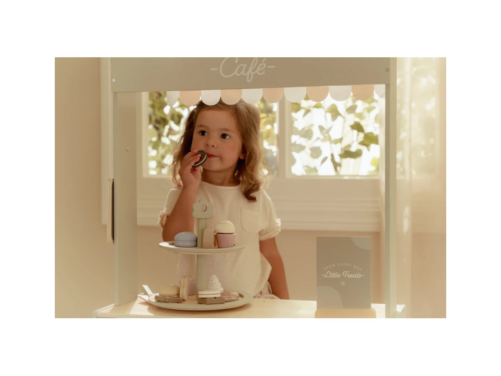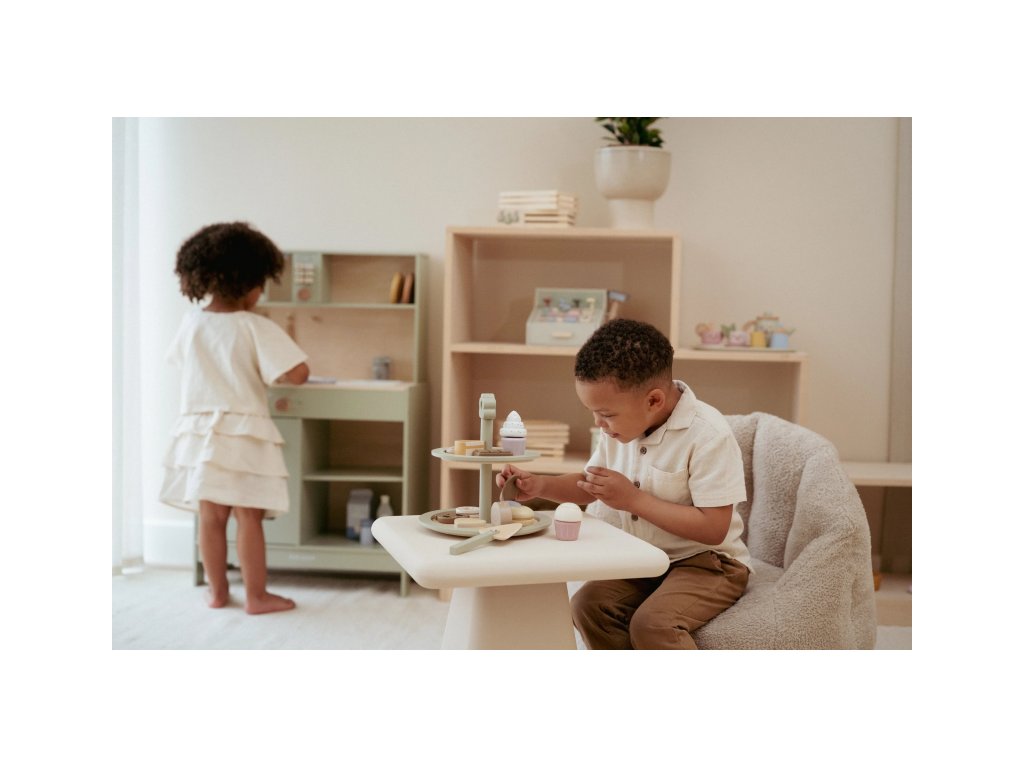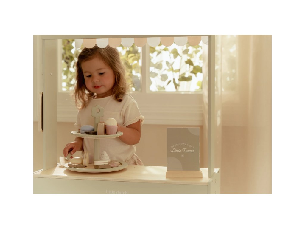 Máte chuť na sladký dezert? Nádherný stojan na cukroví Little Dutch s výběrem sladkých dobrot je jako stvořený pro všechny malé hostitele a hostitelky. Na dvou patrech mohou aranžovat a nabízet svým hostům různé druhy lákavých zákusků. Díky obrázkovému menu si hosté mohou vybírat a objednávat svou oblíbenou sladkost. Elegantní stojan v kvalitním dřevěném provedení je skvělým doplňkem pro hru na čajové dýchánky, narozeninové oslavy nebo vlastní dětskou cukrárnu. Podporuje rozvoj fantazie, jemné motoriky i sociálních dovedností – ať už děti obsluhují své plyšové kamarády, rodinu nebo pořádají hostinu pro princeznu z pohádkové země. Obsah balení: dvoupatrový stojan, servírovací lopatka, různé zákusky a obrázkové menu se stojánkem. Hračka je součástí kolekce vysoce kvalitních dřevěných hraček Little Dutch, navržených s důrazem na bezpečnost a originální design. Vyrobeno z odolného FSC certifikovaného dřeva. Rozměry: 22 × 23,6 × 22 cm Vhodné pro děti od 2 let.