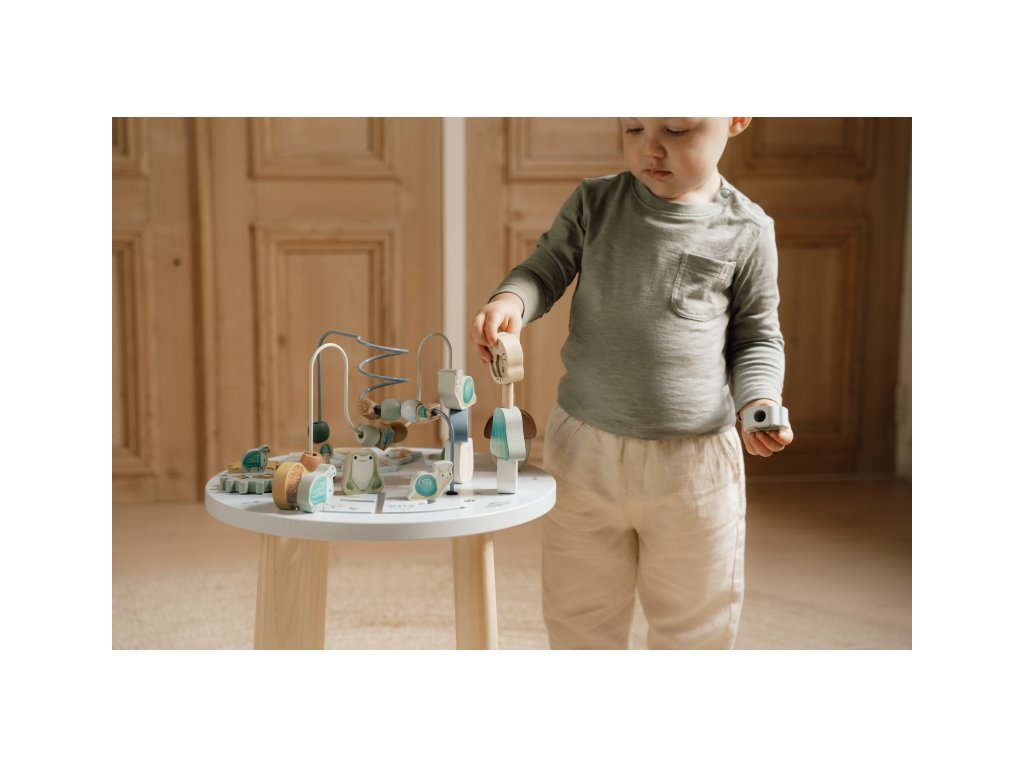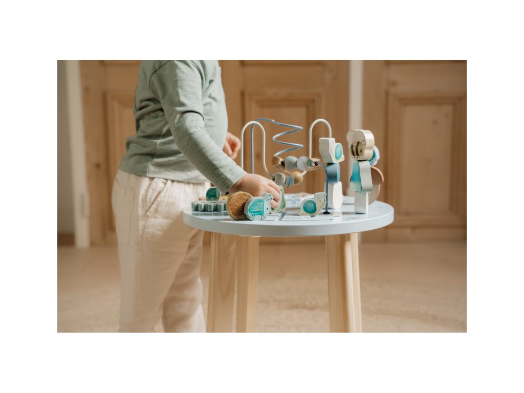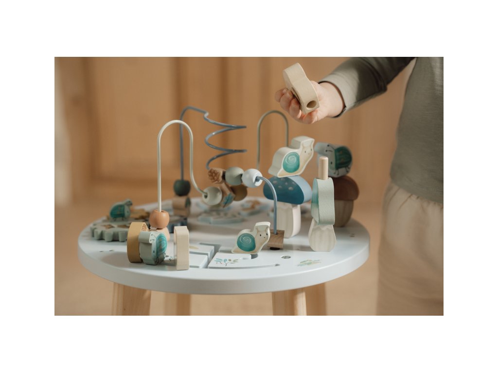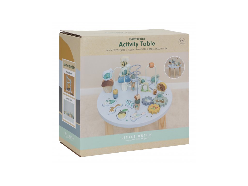 Dřevěný multifunkční stolek v krásném a vysoce kvalitním provedení nabízí vašemu dítěti množství různorodých aktivit, které dítě zabaví a zároveň pomáhají rozvíjet jeho jemnou motoriku i jednotlivé smysly. Lákat dítě ke zkoumání budou pohyblivé, posuvné i odnímatelné dřevěné díly v podobě ježka, šneka, žáby, houbiček a dalších motivů ze života v lese. Díky stabilnímu dřevěnému provedení je stolek vhodný i pro děti, které hledají oporu při prvních krůčcích. Stolek je součástí designové kolekce hraček a doplňků Little Dutch Forest Friends inspirované životem v lese. Vyrobeno z dřeva certifikovaného FSC. Rozměry: 39 x 39 x 54 cm Vhodné pro děti od 12 měsíců.