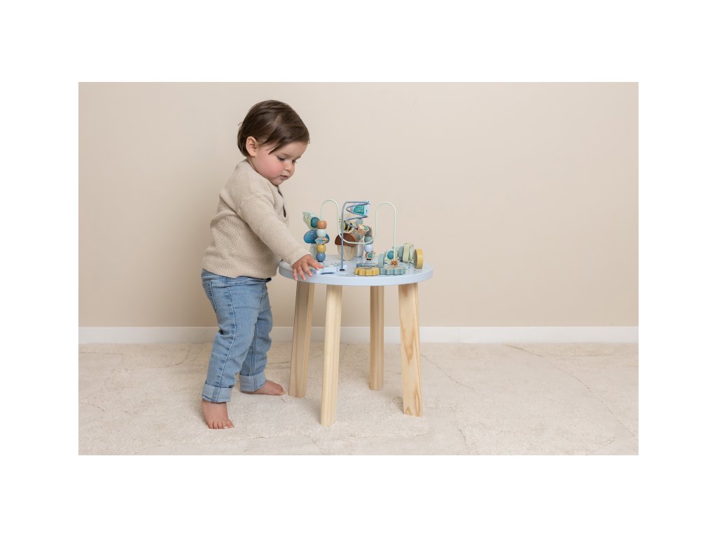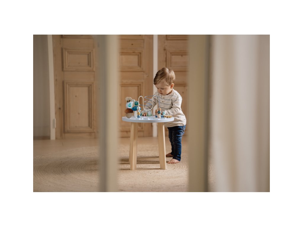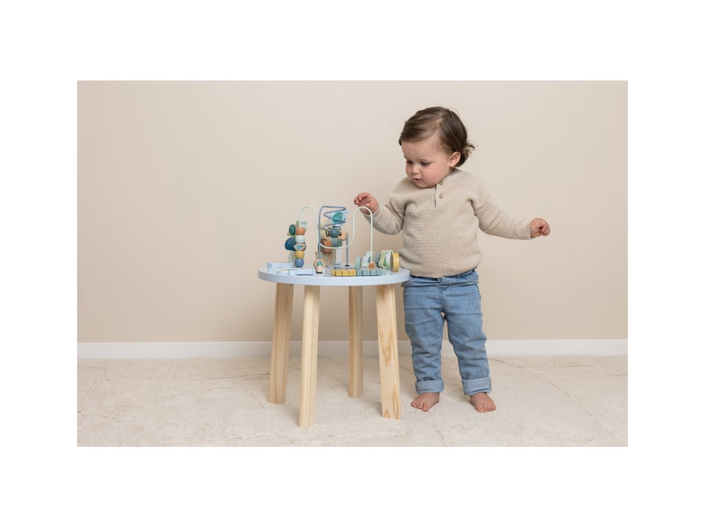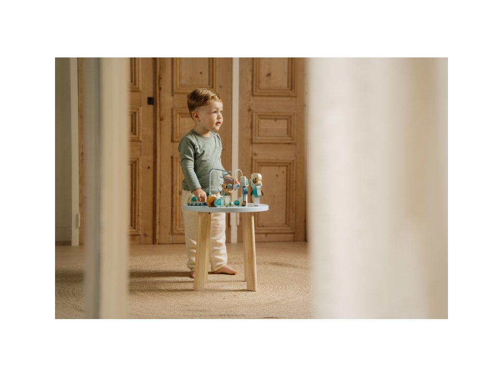 Dřevěný multifunkční stolek v krásném a vysoce kvalitním provedení nabízí vašemu dítěti množství různorodých aktivit, které dítě zabaví a zároveň pomáhají rozvíjet jeho jemnou motoriku i jednotlivé smysly. Lákat dítě ke zkoumání budou pohyblivé, posuvné i odnímatelné dřevěné díly v podobě ježka, šneka, žáby, houbiček a dalších motivů ze života v lese. Díky stabilnímu dřevěnému provedení je stolek vhodný i pro děti, které hledají oporu při prvních krůčcích. Stolek je součástí designové kolekce hraček a doplňků Little Dutch Forest Friends inspirované životem v lese. Vyrobeno z dřeva certifikovaného FSC. Rozměry: 39 x 39 x 54 cm Vhodné pro děti od 12 měsíců.
