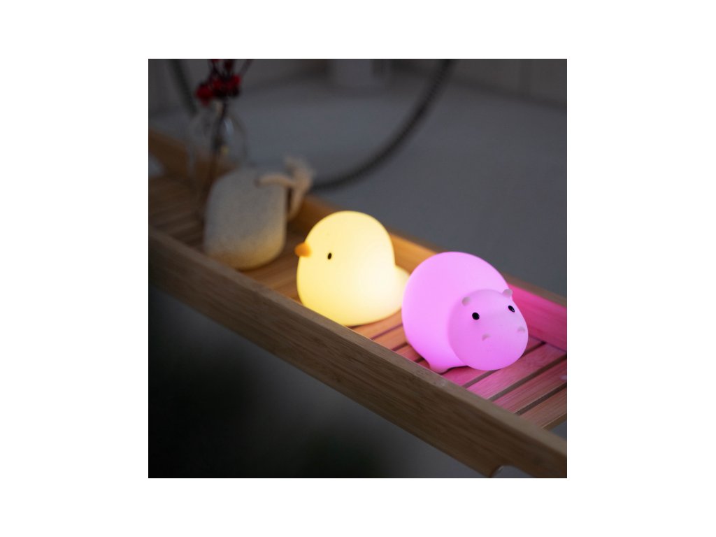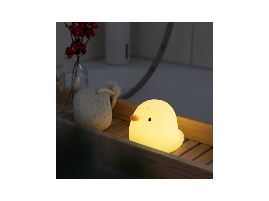 Světlo do vany MegaLight Swimmy Duck v podobě roztomilé kačenky poskytne vašemu dítěti zábavu během koupání ve vaně. Díky svému designu bude i krásnou dekorací v dětském pokoji. LED světlo s nabíjecí baterií 7 RGB barev snadné ovládání dotykem automatické vypnutí po 5 minutách bez doteku životnost baterie 25 hodin nabíjení s pomocí přiloženého USB-C kabelu testováno v souladu se směrnicemi o hračkách Složení: ABS, polykarbonát, silikon Rozměry: 84 x 73 x 73 mm Vhodné pro děti od 3 let.
