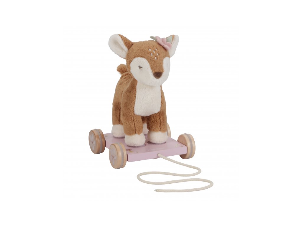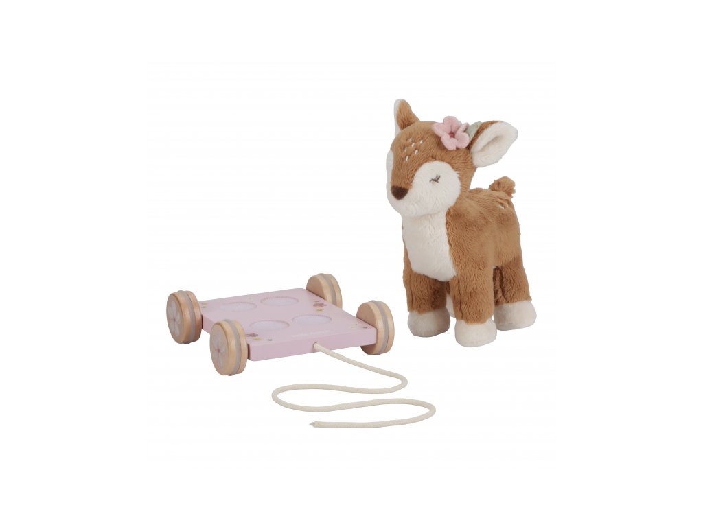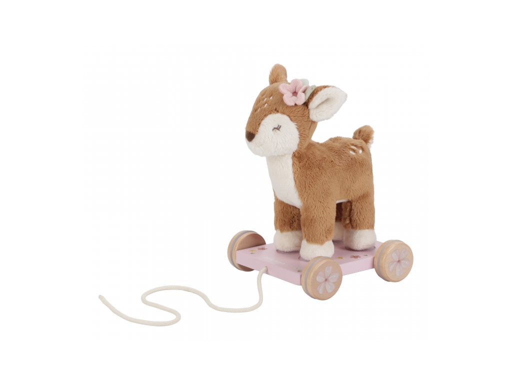 Plyšová srnka na kolečkách má šňůrku, aby ji dítě mohlo tahat za sebou. Srnka je připevněna k vozíčku s pomocí suchých zipů a je možné ji snadno oddělit a používat samostatně. Hračka je součástí designové kolekce hraček a doplňků Little Dutch Fairy Garden inspirované životem na zahradě. Vyrobeno z dřeva certifikovaného FSC. Rozměry: 15 x 13 x 23 cm Vhodné pro děti od 12 měsíců.