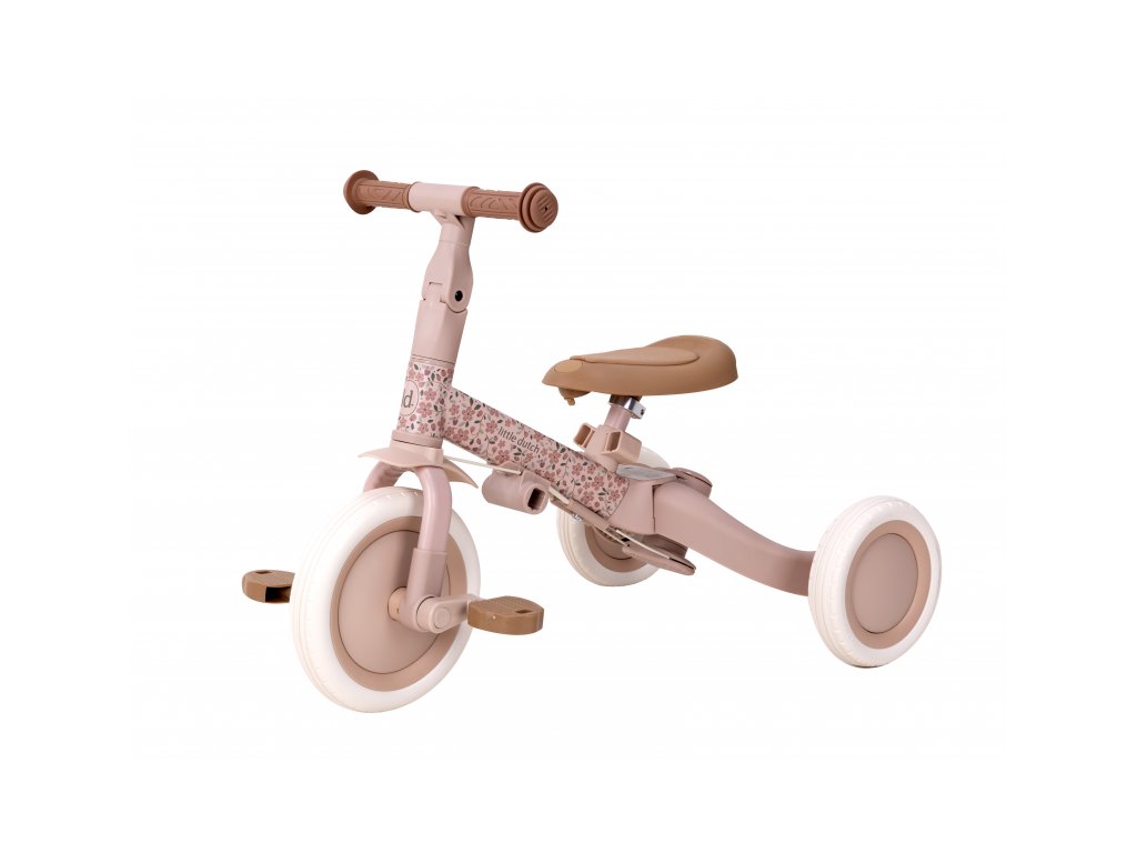 Dětská tříkolka 4v1 Little Dutch roste s vaším dítětem! Multifunkční tříkolka se snadno přizpůsobí měnícím se potřebám dítěte od jednoho do tří let a pomůže mu rozvíjet rovnováhu i koordinaci. Tříkolka je ideální pro objevování světa na kolech a plynulý přechod na šlapací kolo. 4v1 design – snadno přeměníte tříkolku na balanční odrážedlo Dětská bezpečnost na prvním místě – odnímatelný bezpečnostní pás a ochranný kruh zajišťují stabilní jízdu nejmenších dětí Rodičovská kontrola – odnímatelná vodicí tyč umožňuje pohodlné tlačení Přizpůsobitelná velikost – výškově nastavitelné sedlo a řídítka Snadné složení a přenášení – lehká a kompaktní konstrukce (pouze 4,5 kg) Prostor pro uložení odnímatelných pedálů pod sedadlo Rozměry: 69 x 45 x 51 cm Hmotnost: 4,5 kg Nosnost: 25 kg Vhodné pro děti od 1 do 3 let.