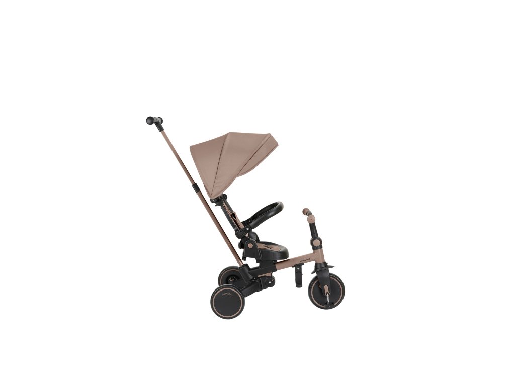 Multifunkční tříkolka KikkaBoo Aluma 8v1 je navržená tak, aby dítěti sloužila opravdu dlouho – od 12 do 60 měsíců. V začátcích funguje v bezpečném „kočárkovém“ režimu s vedením rodičem, postupně přechází do samostatné jízdy jako tříkolka s pedály a odrážedlo. Díky skládacímu provedení a chytrým detailům je ideální i na cestování. Pro maximální bezpečí je tříkolka vybavená 5-bodovým pásem, odnímatelným bezpečnostním madlem a nastavitelnou stříškou, kterou lze podle potřeby odejmout. Nechybí sklápěcí opěrka zad nastavitelná do 4 poloh, nastavitelná řídítka a otočné sedátko. Rodiče ocení nastavitelnou vodicí tyč ve 3 polohách, díky kterým se tříkolka dobře ovládá. Pedály na předním kole lze zablokovat, zadní kola mají brzdu a celé složení funguje jedním tlačítkem. Pro přenášení je k dispozici madlo a na drobnosti taška na příslušenství. Konstrukce je z lehké a pevné hliníkové slitiny, takže je tříkolka dobře přenosná a zároveň stabilní pro každodenní používání. skládací design + složení jedním tlačítkem multifunkční 8v1 (od rodičovského vedení až po odrážedlo) lehký a odolný hliníkový rám otočné sedátko nastavitelná řídítka a opěrka zad odnímatelná a nastavitelná stříška 5-bodové pásy + odnímatelné bezpečnostní madlo nastavitelná vodicí tyč sklápěcí opěrka nohou zámek pedálů předního kola zadní brzda odnímatelné pedály madlo na přenášení + taška na doplňky Rozměry (rozložená): 71 × 49 × 93–99 cm Rozměry (složená): 55 × 49 × 38 cm Hmotnost: 6,4 kg Vhodné pro děti od 12 do 60 měsíců.