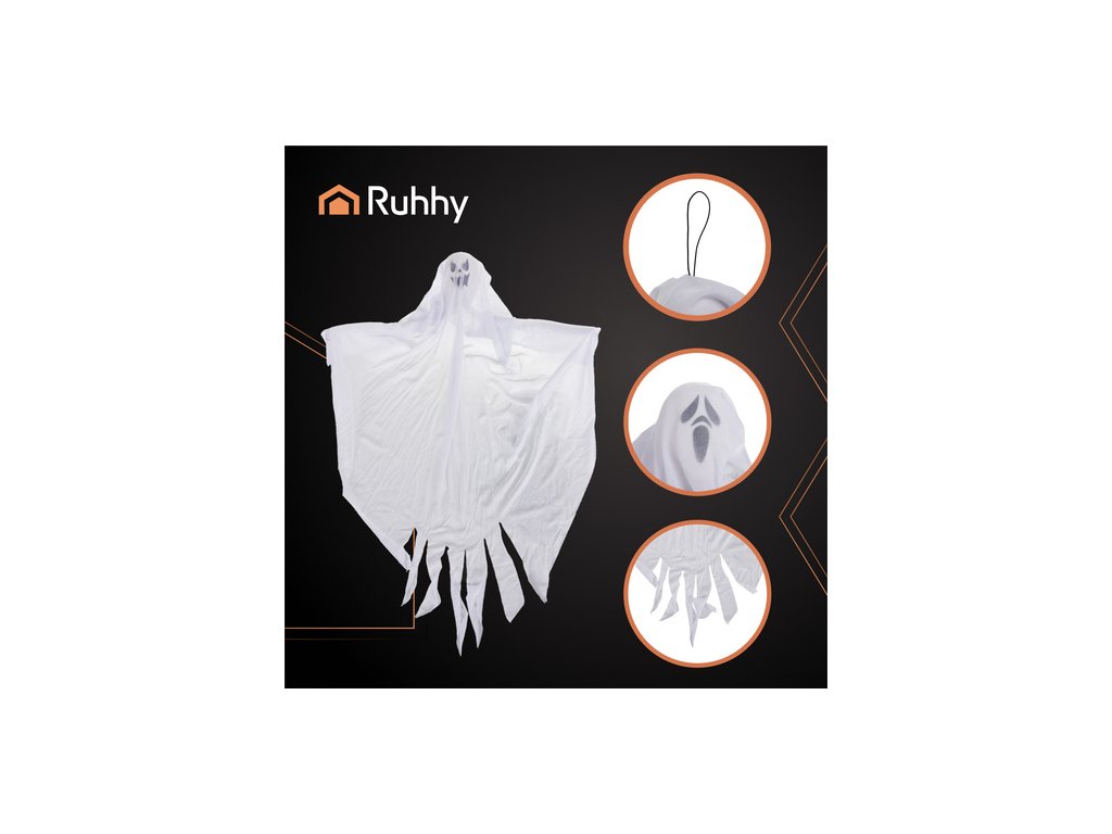 Závěsný bílý duch s výkřikem – strašidelná halloweenská dekorace 65 × 60 cm! Perfektní doplněk, který dodá vašemu prostoru mrazivou atmosféru a vyděsí každého návštěvníka.