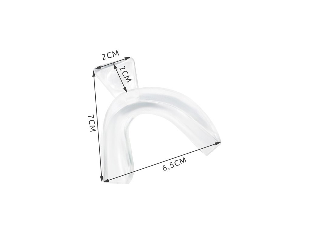 Snadné přizpůsobení Tento inovativní produkt se snadno přizpůsobí jakémukoli typu zubního oblouku a může být použit na spodních nebo horních zubech. Relaxační vlastnosti - Pomáhá uvolnit neustále napjaté čelistní svaly. - Zabraňuje přetěžování temporomandibulárních kloubů a jejich progresivní degeneraci. - Dlouhodobě přispívá k lepší srozumitelnosti řeči a usnadňuje proces jídla. Ochranné funkce - Prevence otěru skloviny. - Zamezení krvácení při čištění zubů. - Úleva od bolestí temporomandibulárního kloubu a svalů. - Snížení bolesti čelistí. Materiál Zubní kryt je vyroben ze speciálního zdravotně nezávadného materiálu.Specifikace