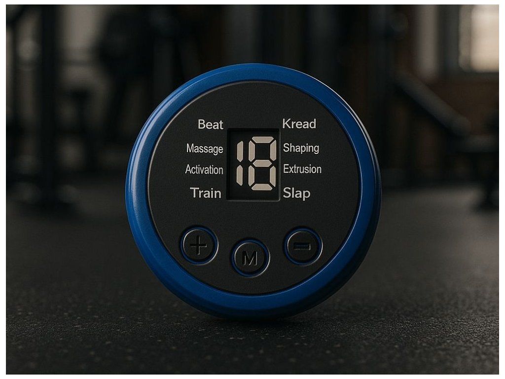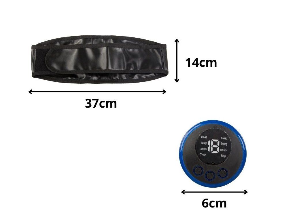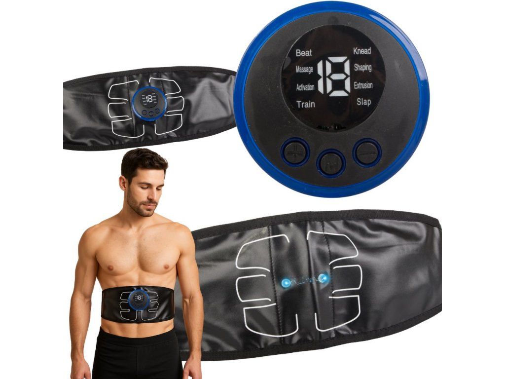 Zařízení je lehké, pružné a přizpůsobí se postavě. Velký čitelný LED displej informuje o aktuálním režimu a úrovni výkonu. Ovládání se provádí pomocí tří tlačítek – stačí si nasadit pás, vybrat program a zahájit trénink. Napájení je zajištěno pomocí USB dobíjecího akumulátoru, což zaručuje pohodlné používání bez nutnosti výměny baterií.