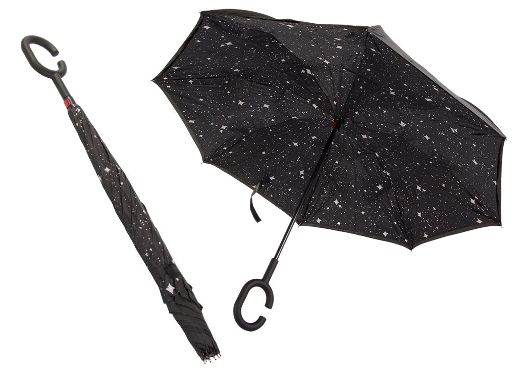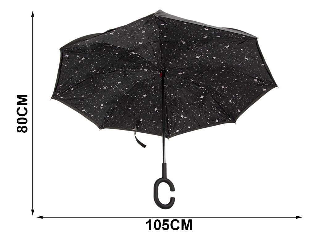 OBRÁCENĚ SKLÁDACÍ DEŠTNÍK SILNÉ DRÁTY PEVNÉ HVĚZDY