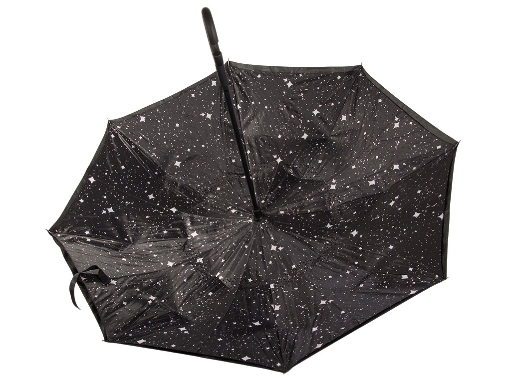 Po rozložení má vnější strana deštníku elegantní černou barvu. Uvnitř je vkusný barevný potisk, který opatří náladu během zamračených deštivých dnů. Sleva ve stylu pokračuje i po složení, kdy je barevný potisk vidět na horní straně deštníku.
