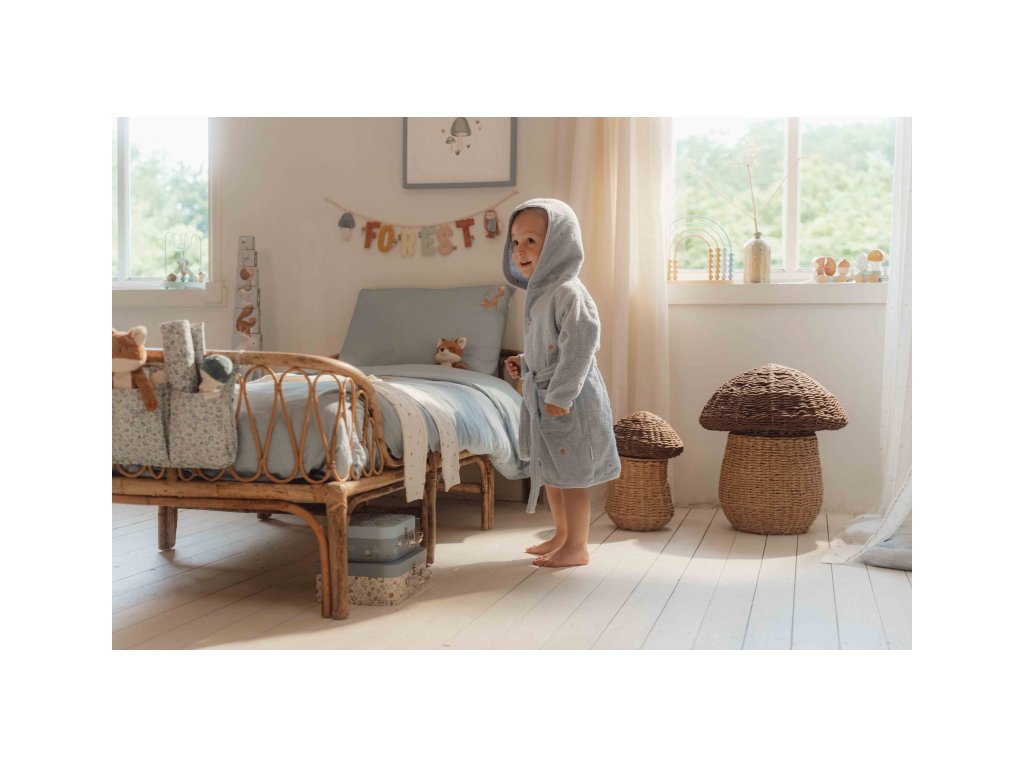 Měkký froté župan s kapucí je ideální pro zahřátí a snadné osušení vašeho dítěte po koupeli nebo plavání. Župan z příjemné 100% organické bavlny s vyšívanými houbičkami se zapíná s pomocí zavazovacího pásku. Župan je součástí designové kolekce textilu, hraček a doplňků Little Dutch Forest Friends inspirované životem v lese. Složení: 100% organická bavlna