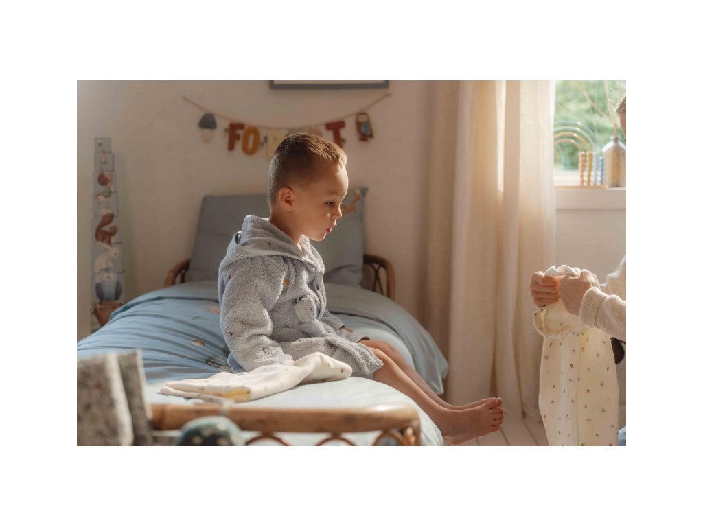 Měkký froté župan s kapucí je ideální pro zahřátí a snadné osušení vašeho dítěte po koupeli nebo plavání. Župan z příjemné 100% organické bavlny s vyšívanými houbičkami se zapíná s pomocí zavazovacího pásku. Župan je součástí designové kolekce textilu, hraček a doplňků Little Dutch Forest Friends inspirované životem v lese. Složení: 100% organická bavlna