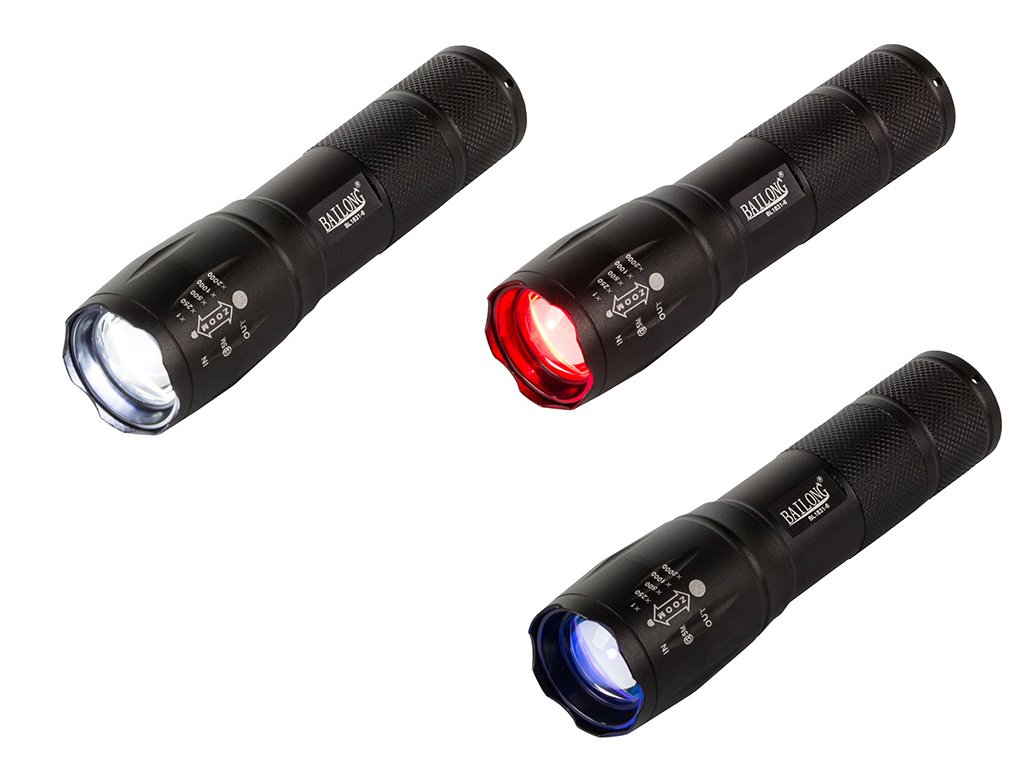 TAKTICKÁ LED SVÍTILNA CREE Q3 TESTER UV ČERVENÁ T6 ZOOM MODEL BL-1831-6