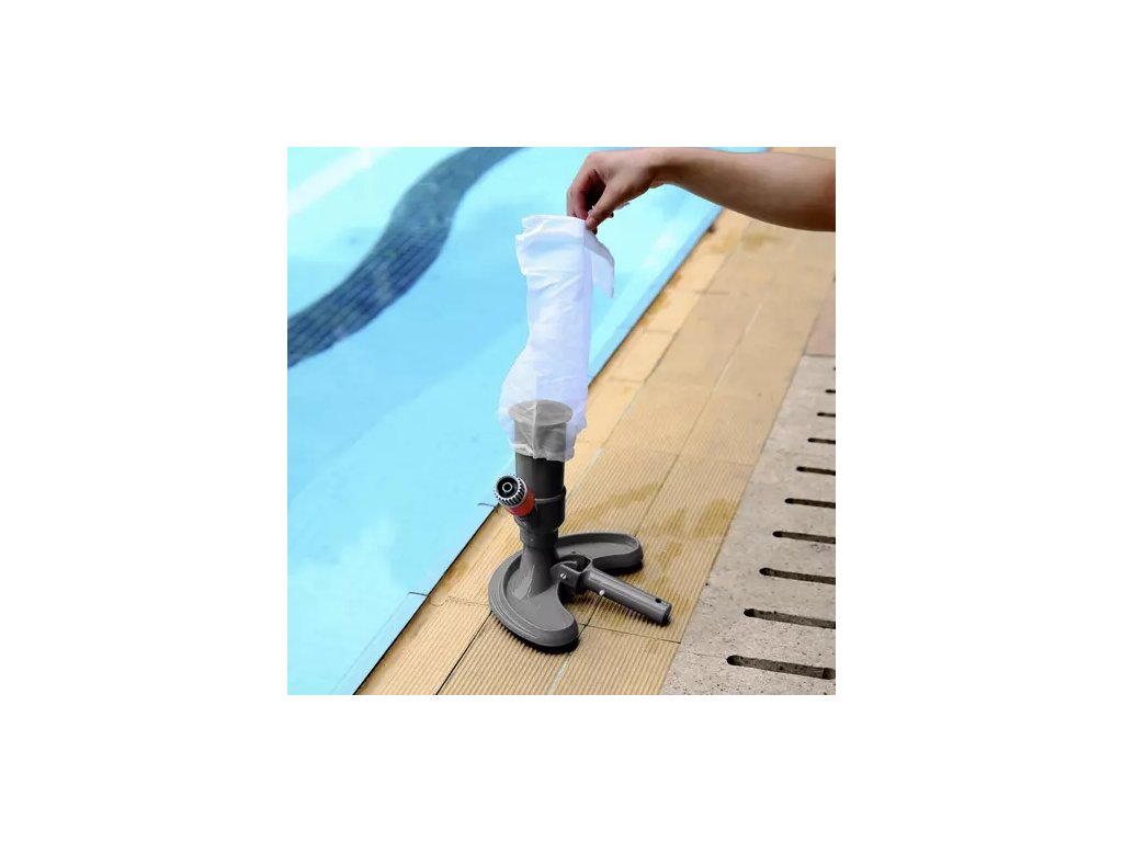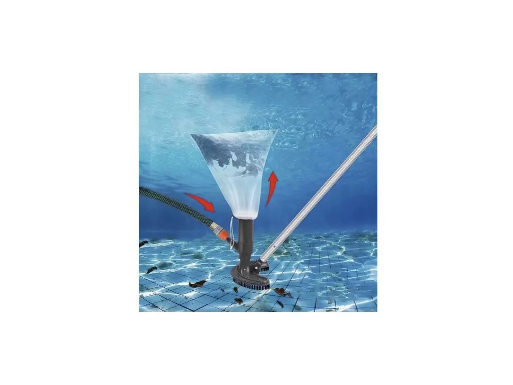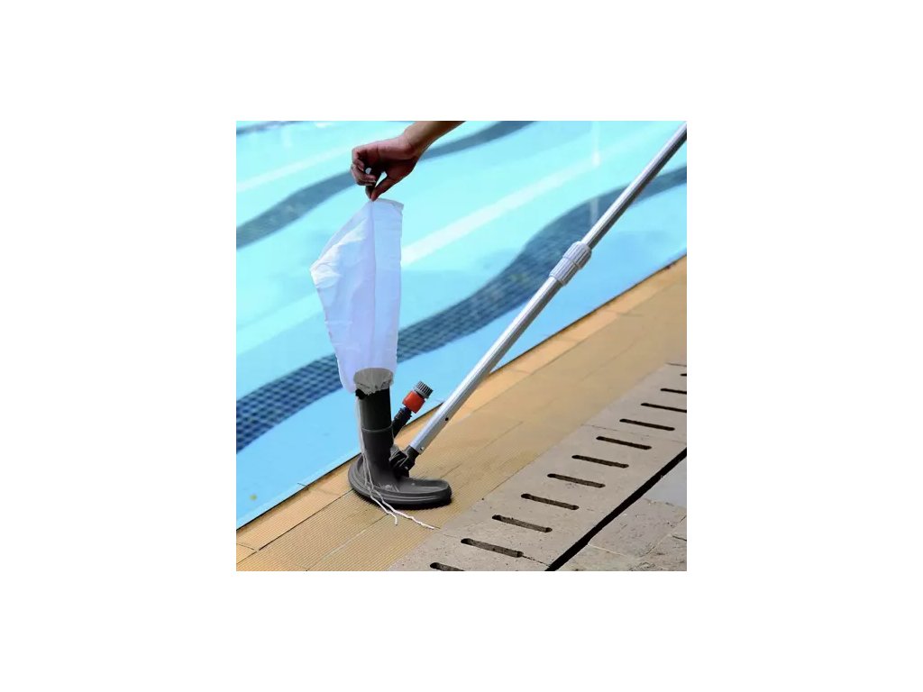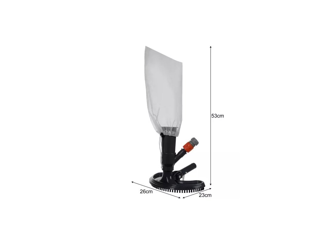 Tento čisticí vysavač využívá tlak vody ze zahradní hadice. Připojuje se pomocí rychlospojky a klouže po dně bazénu, což představuje nejjednodušší a nejpohodlnější způsob čištění dna bazénu.