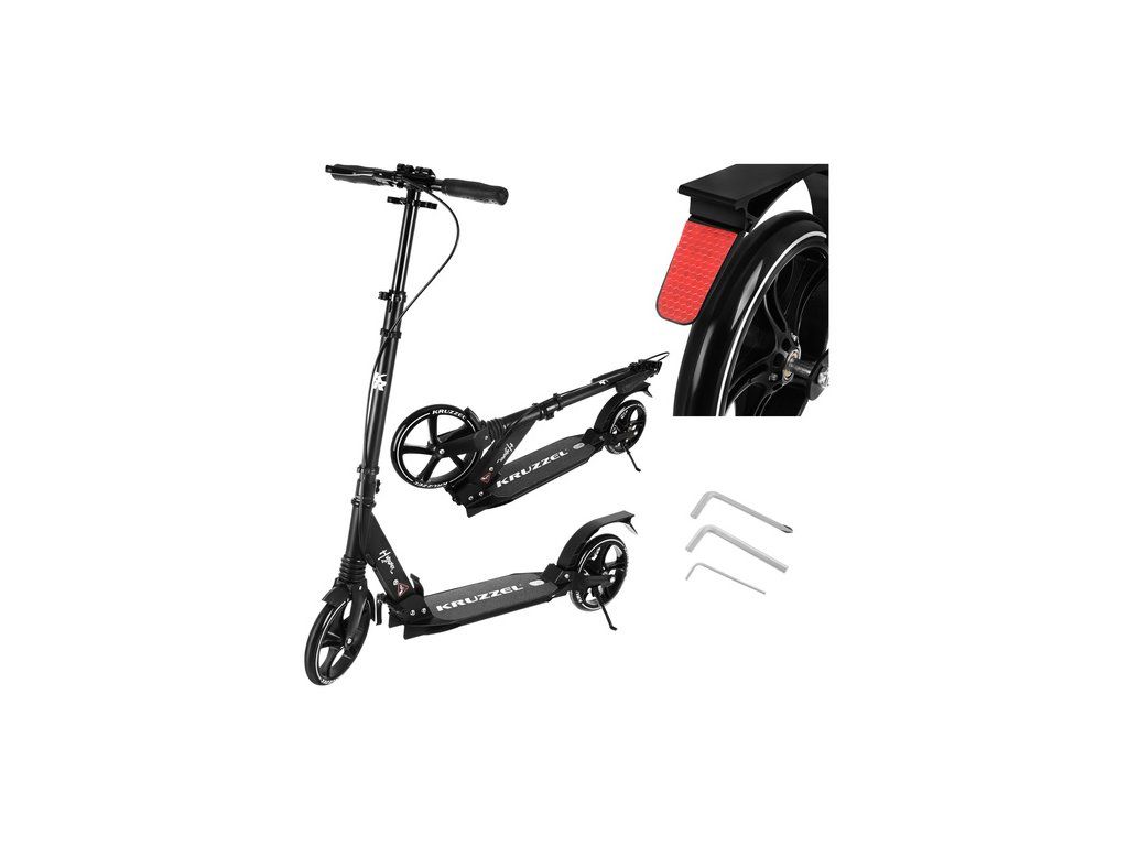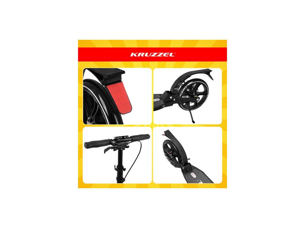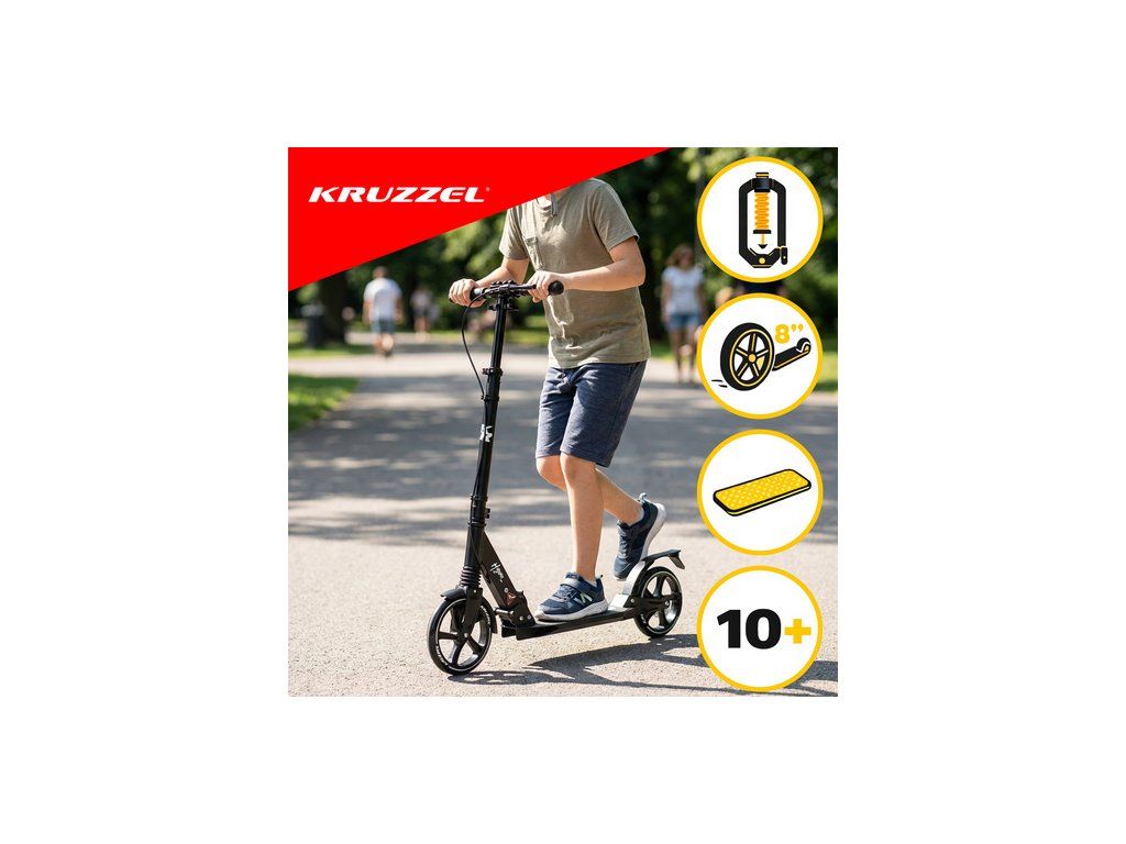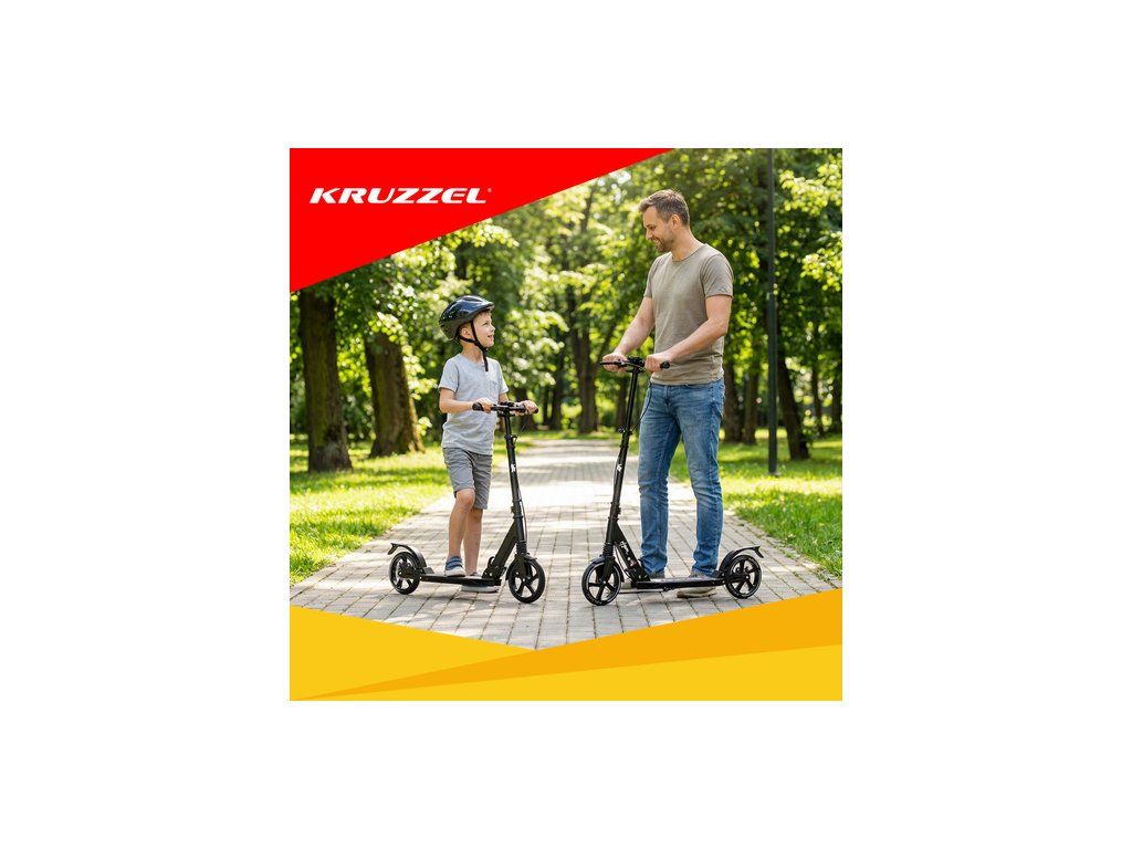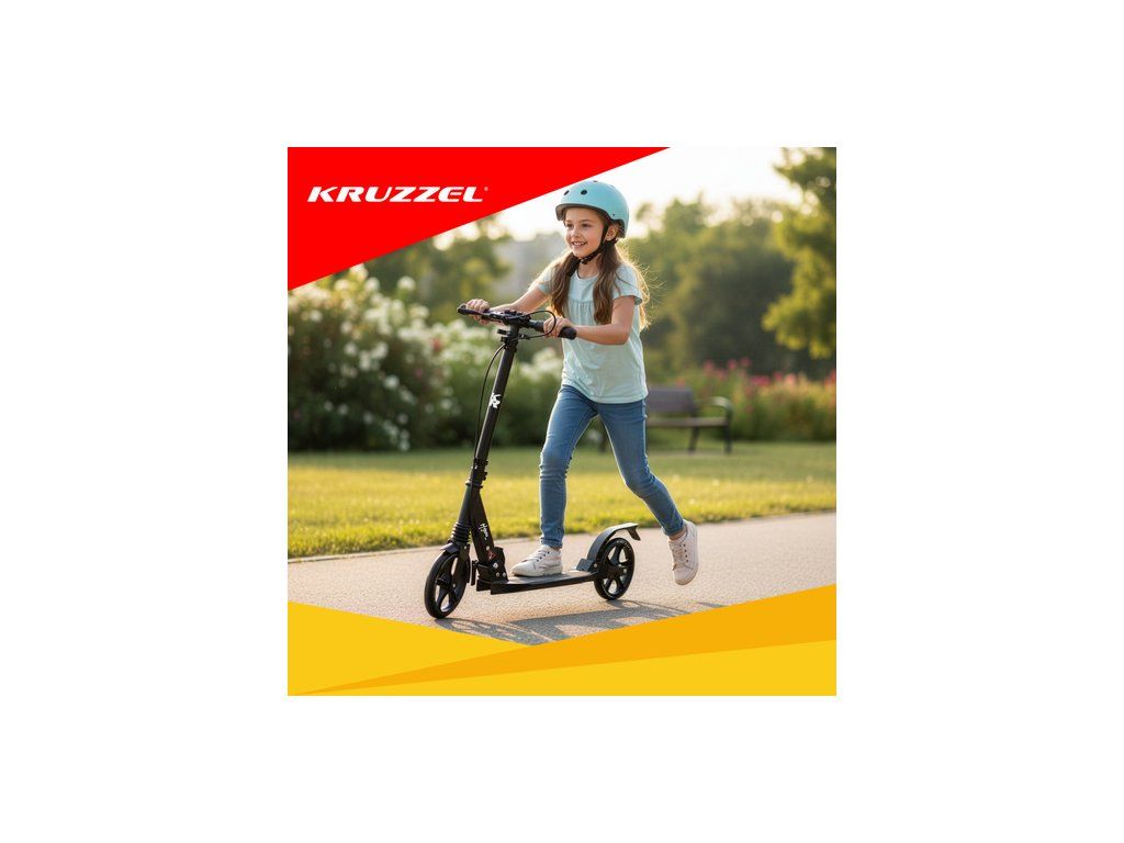 Skládací koloběžka KRUZZEL je Robustní, prémiový městský model určený pro děti i dospělé . Velká 20cm gumová kola, ložiska ABEC-9 a dvojitý brzdový systém zajišťují plynulou, bezpečnou a pohodlnou jízdu. Lehká hliníková konstrukce a rychlé skládání z něj činí ideální volbu pro každodenní použití.