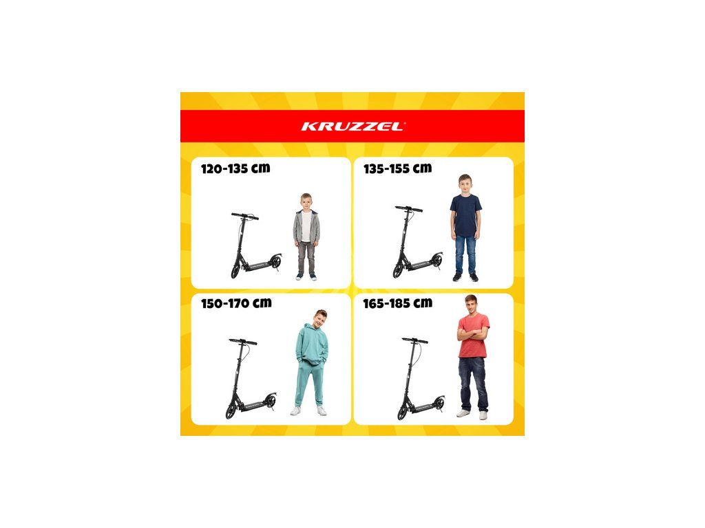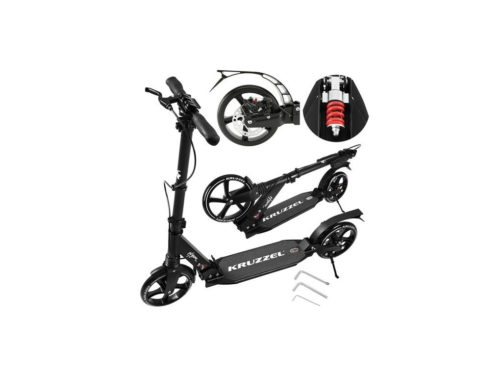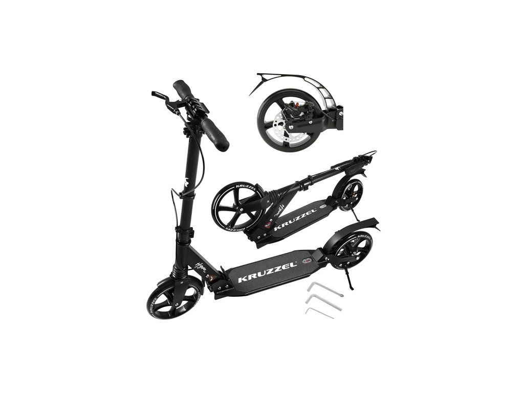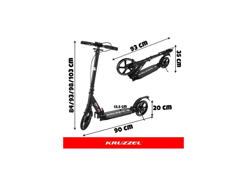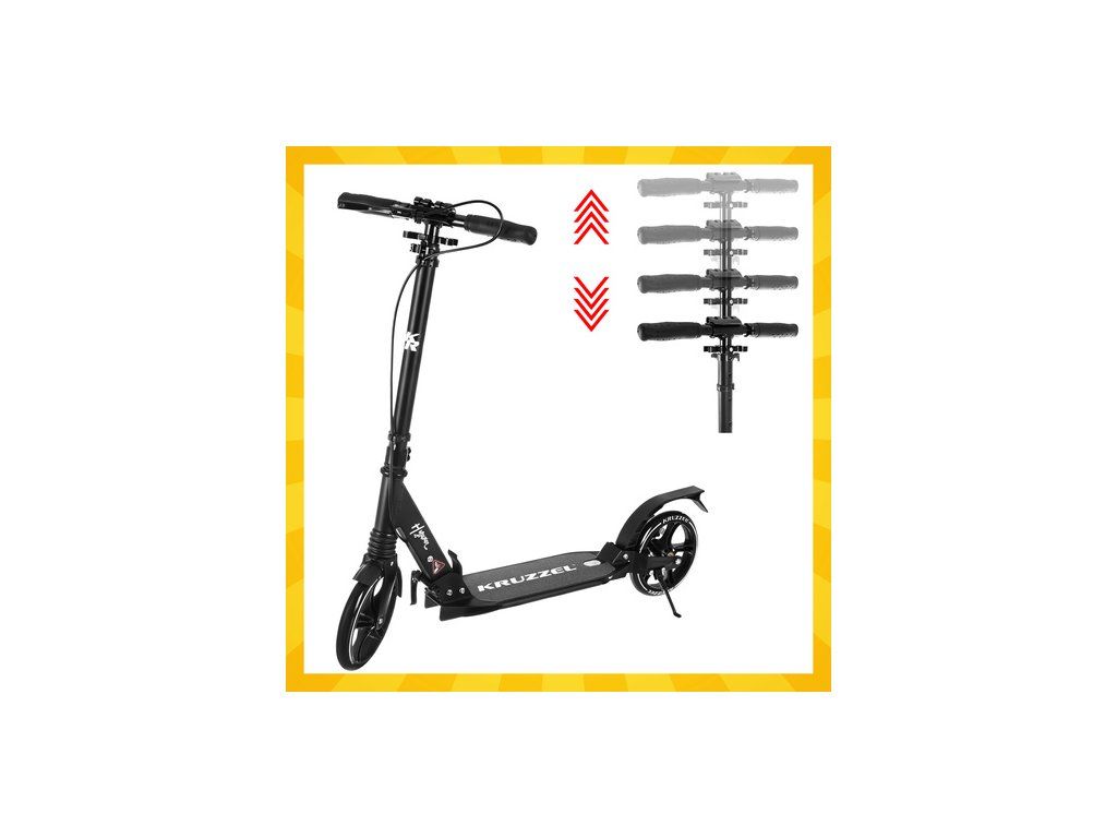 Velká skládací koloběžka KRUZZEL, kola 20 cm, prémiová třída s kotoučovou brzdou a nastavitelnou výškou řídítek