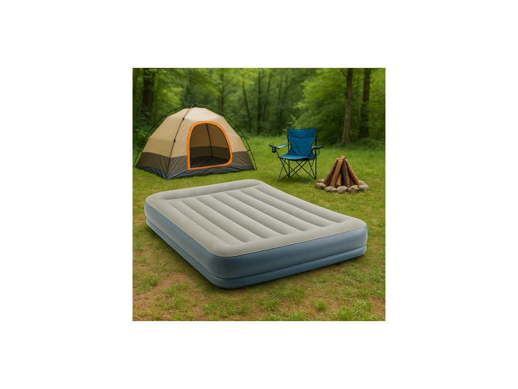 Dvoulůžkové provedení – dostatek prostoru pro dvě osoby. Velurový povrch – příjemný a měkký materiál pro komfortní spánek. Odolná konstrukce – pevný materiál zajišťuje stabilitu a dlouhou životnost. Snadné nafouknutí a vyfouknutí – rychlá příprava lůžka bez námahy. Praktické využití – ideální na kempování, do stanu, na chatu i jako provizorní postel.