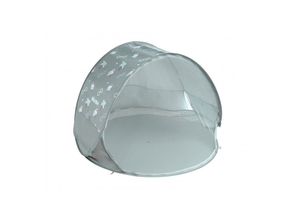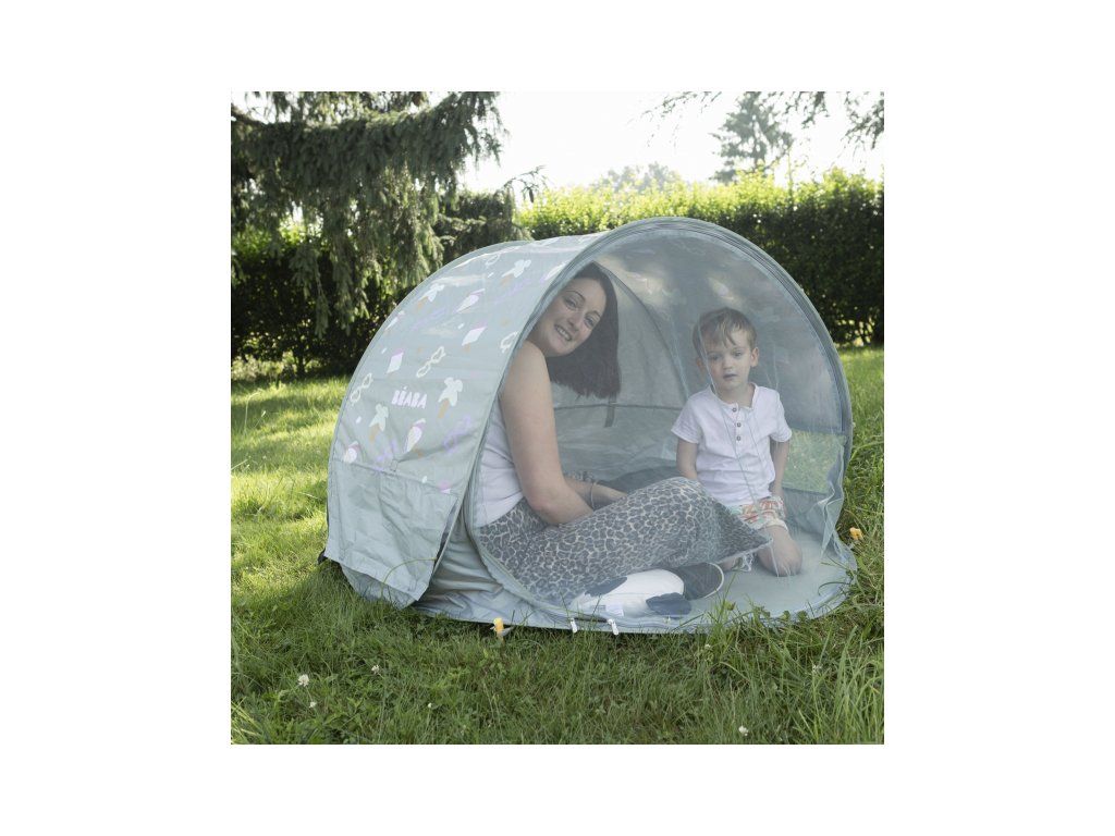 Přenosný univerzální stan s UV faktorem 50+ pro ochranu dítěte před sluncem na zahradě, na pláži či na výletech do přírody. Stan umožňuje snadnou ventilaci díky bočním otvorům se síťovinou a textilními chlopněmi, které je možné srolovat. Síťovina chrání dítě ve stanu před obtížným hmyzem. Stan nabízí prostor pro jednoho dospělého a jedno dítě nebo pro více dětí. Stan s vyskakovacím systémem velmi snadno složíte i rozložíte. Po složení do přenosné tašky o průměru 60 cm jej vezmete s sebou kamkoli potřebujete. Rozměry: průměr 120 cm, výška 85 cm Příslušenství: taška na přenášení s popruhem přes rameno, 4 kolíky pro uchycení stanu. Složení: 100% polyester (bez PFAS)Doplňkové parametry