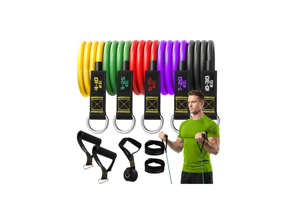Odporové gumy Trizand – delší a silnější tréninkové gumy se zesílenými háčky a lepšími švy pro efektivní trénink doma i v posilovně!