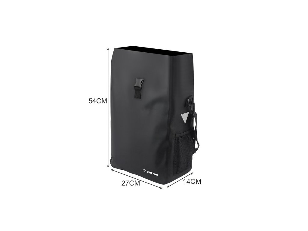 Vodotěsnost + BezpečnostTaška je vyrobena z voděodolného a velmi pevného materiálu (polyester + PVC), což zaručuje ochranu i pro těžké předměty za nepříznivých povětrnostních podmínek. Na bocích tašky se nacházejí další odrazky, které zvyšují viditelnost uživatele ve tmě.