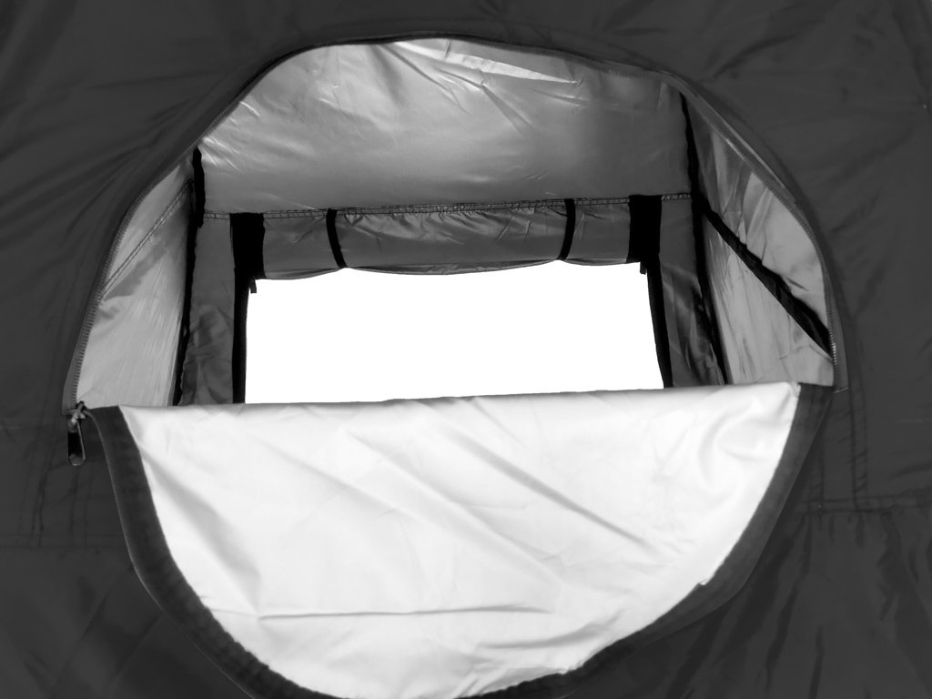 - V zadní části je malý otvor zapínací na zip, ideální jako okno.